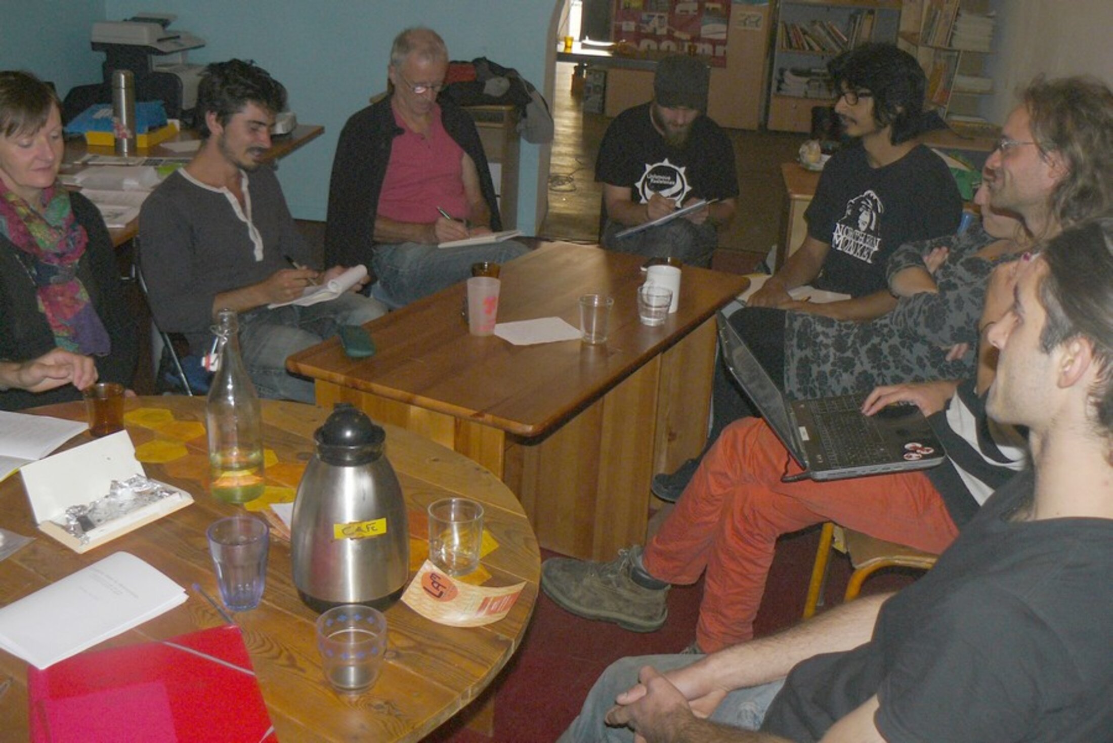 Après la création, la priorité a été donnée à la réflexion théorique, explique Jérôme (du comité d'accueil), et des groupes de travail ont été constitués, notamment pour écrire les statuts. Le groupe central s'est ensuite réduit à une dizaine de personnes au bout de six mois, mais il reste solide. "Le travail de construction est ingrat ; il a pu démotiver les gens", dit Jérôme.