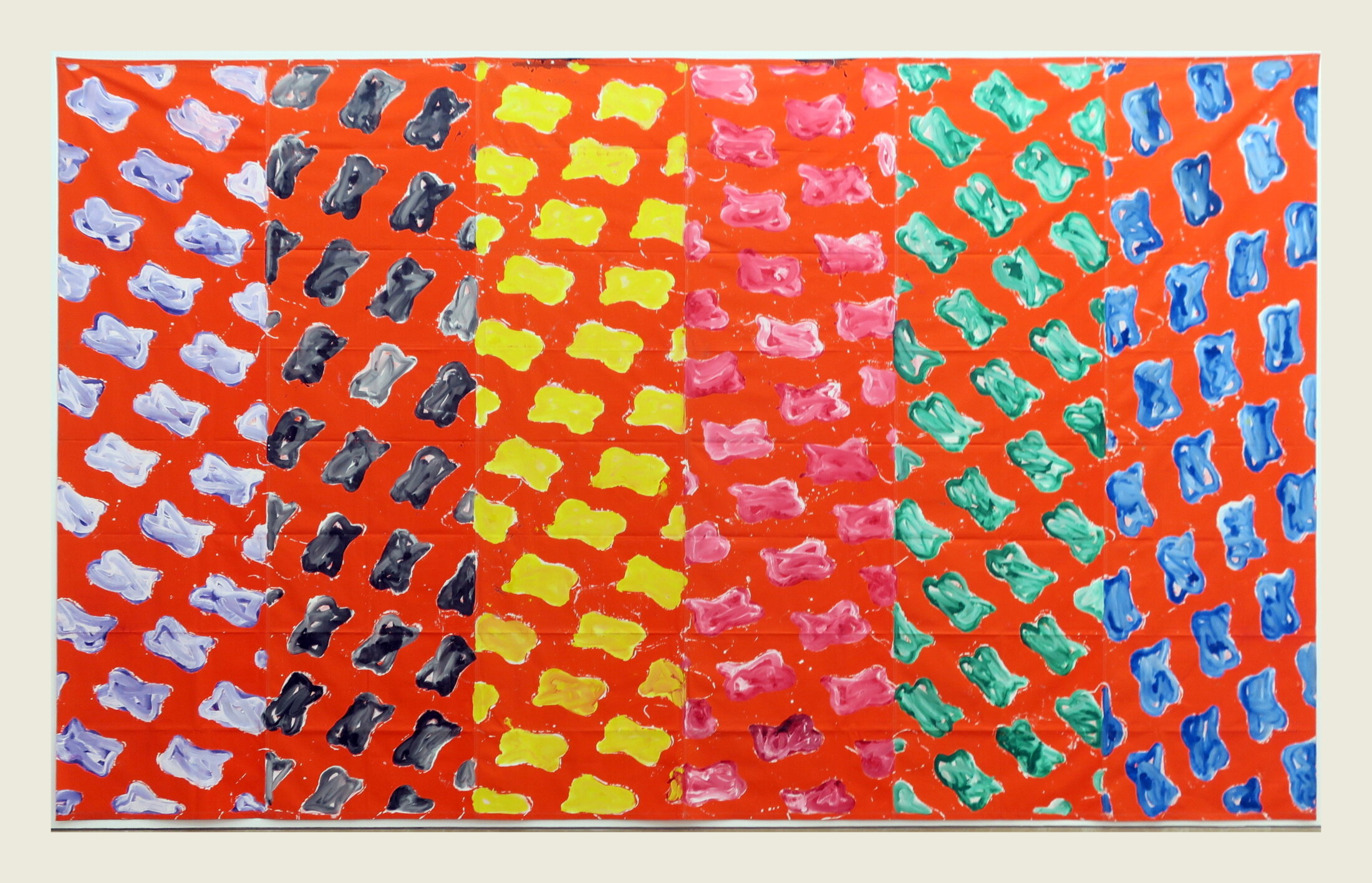 Pour la première fois, la ville natale de Claude Viallat, où il vit et travaille depuis plus de 40 ans, présente une large sélection de ses œuvres récentes, qui investit tout l’espace de Carré d’art.