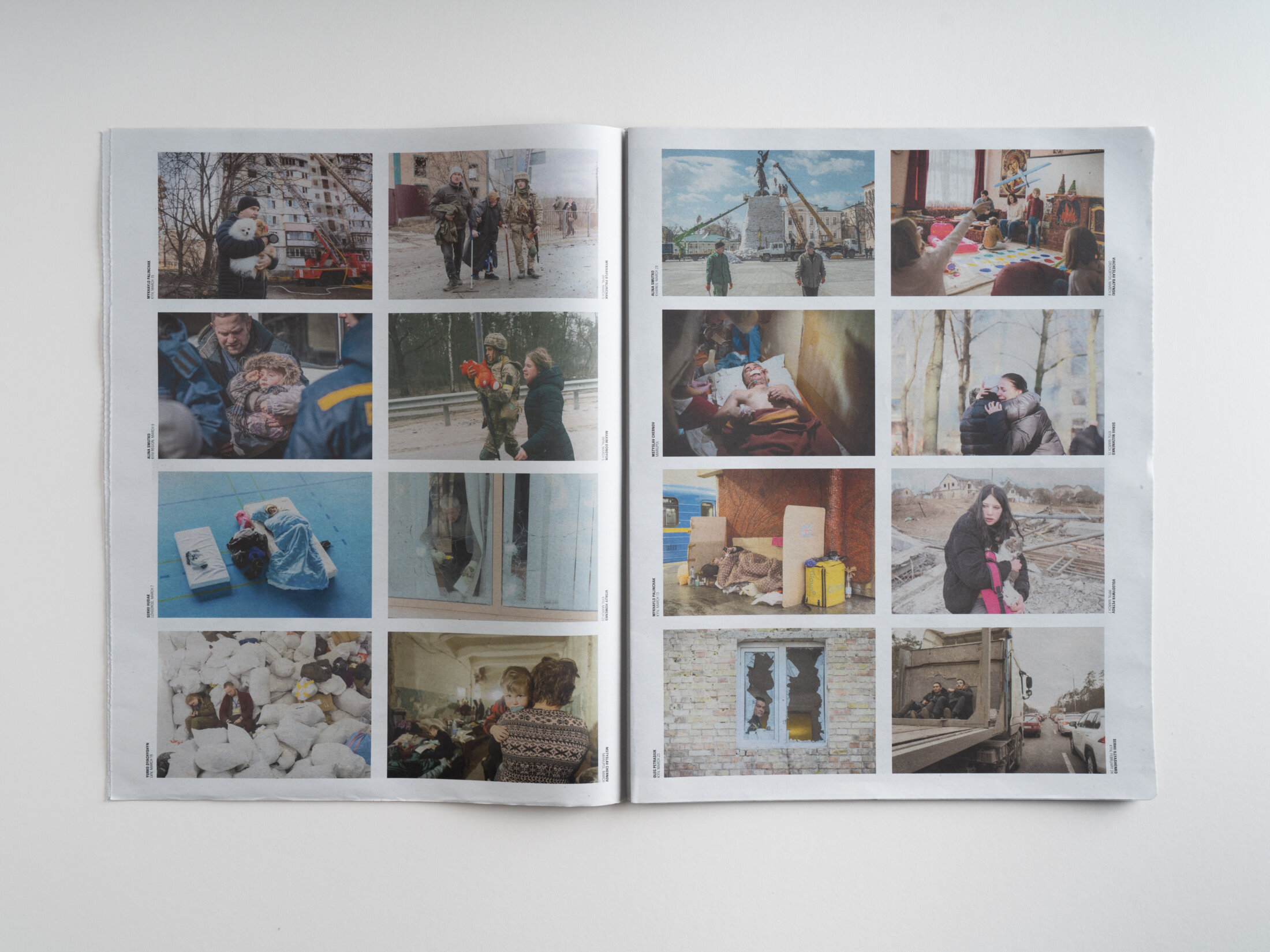 Parmi ces publications, le journal The Information Front, fondé par Katenyna Radchenko et les photographes Donald Weber et Christopher Noon (et mis en forme par le designer SYB). Ce journal, qui contient un texte du poète, écrivain et activiste Serhiy Zhadan, constitue une archive de photos prises sur le front au cours des premiers mois de la guerre (entre février et avril 2022) par trente photographes venus de toute l’Ukraine.