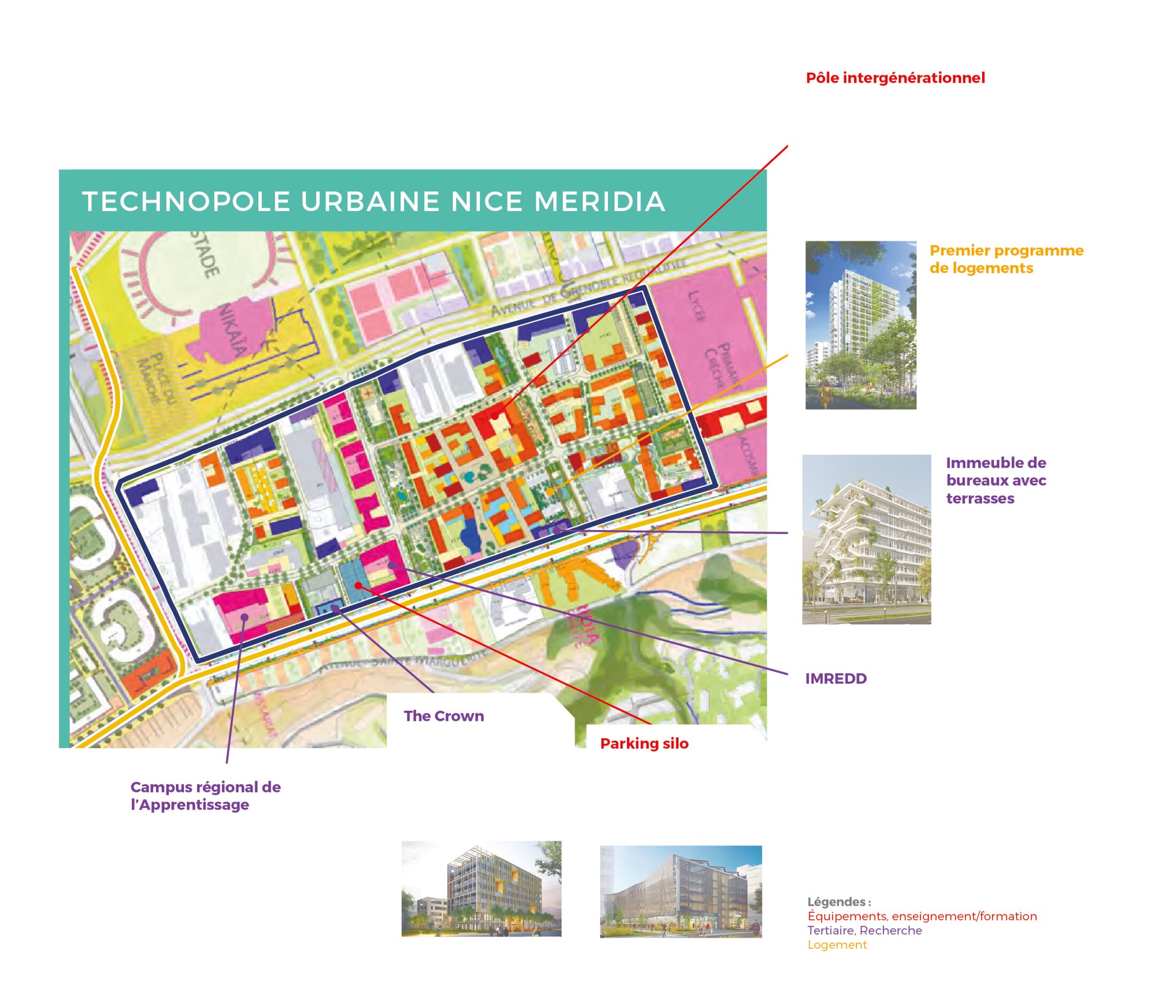 5.000 m2 de bureaux et laboratoires pour l’Université Nice/Sophia Antipolis. L’IMREDD est déjà en place, en attendant la construction de son bâtiment, en occupant un étage d’un immeuble. L’IMREDD a pour vocation d’impulser les recherches, créer des formations initiales et continues qui concernent l'environnement et le développement durable, et de favoriser l'expertise et l'innovation dans ces domaines. Il poursuit la mission qui consiste à inventer la ville méditerranéenne de demain avec son environnement.