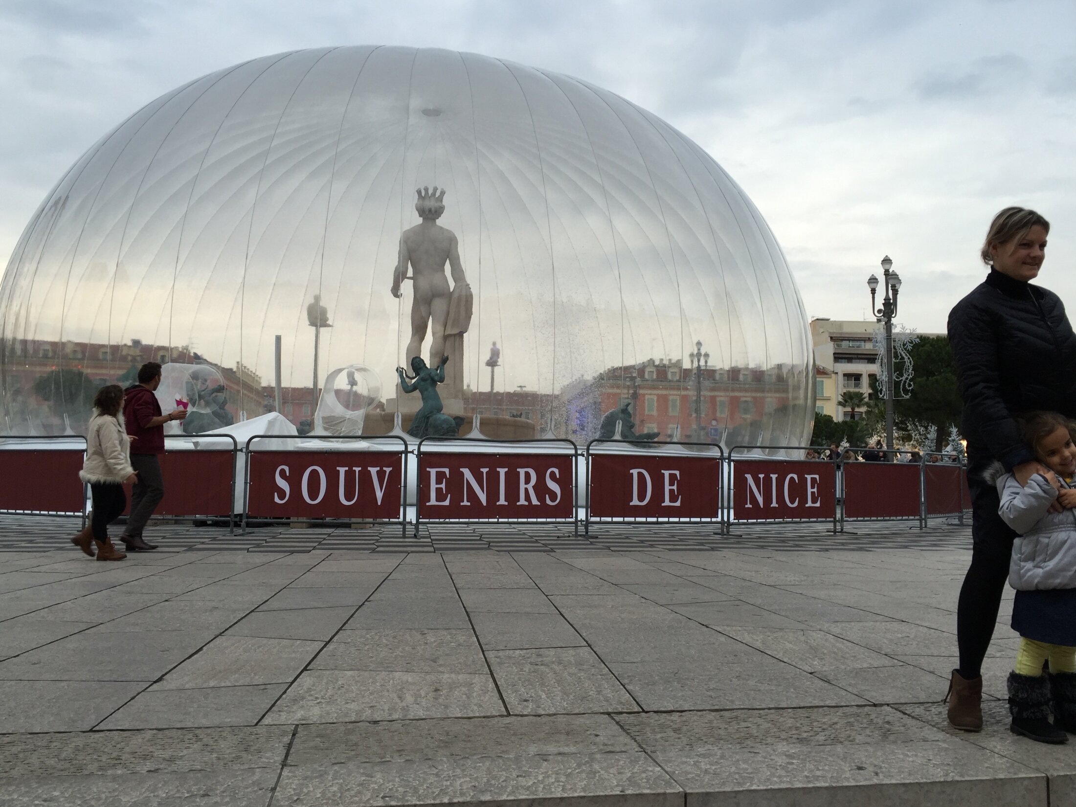 Les Niçois, inquiets, tournent autour de la statue. Certains pensent qu’il s’agit là d’une protection en vue de futurs travaux qui se répartissent actuellement dans toute la ville. D’autres, mauvaises langues, disent que c’est la décoration de Noël.