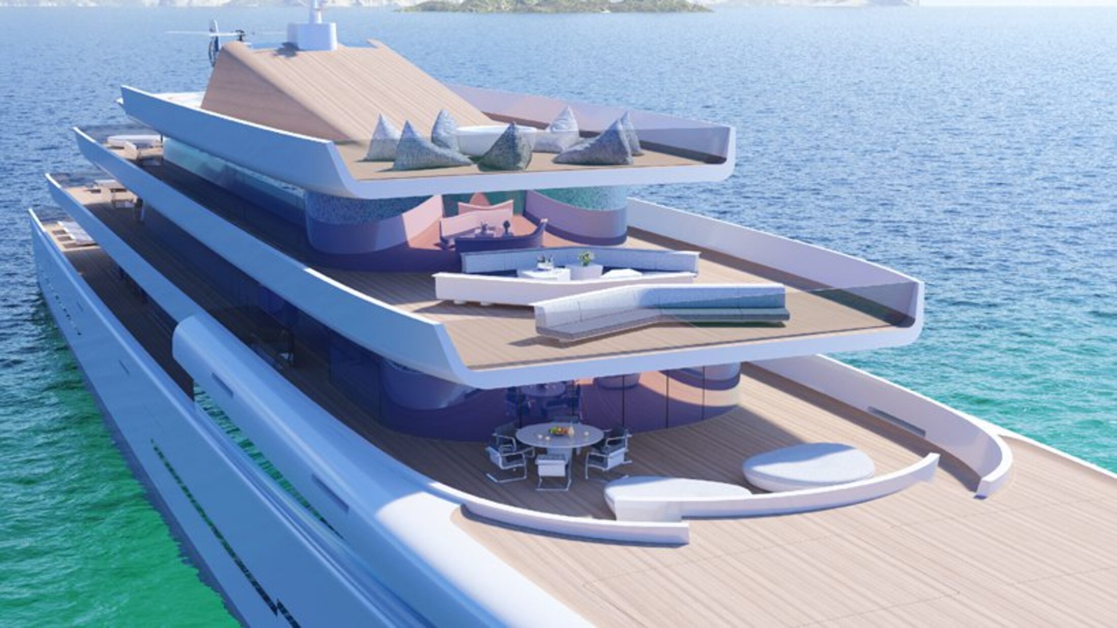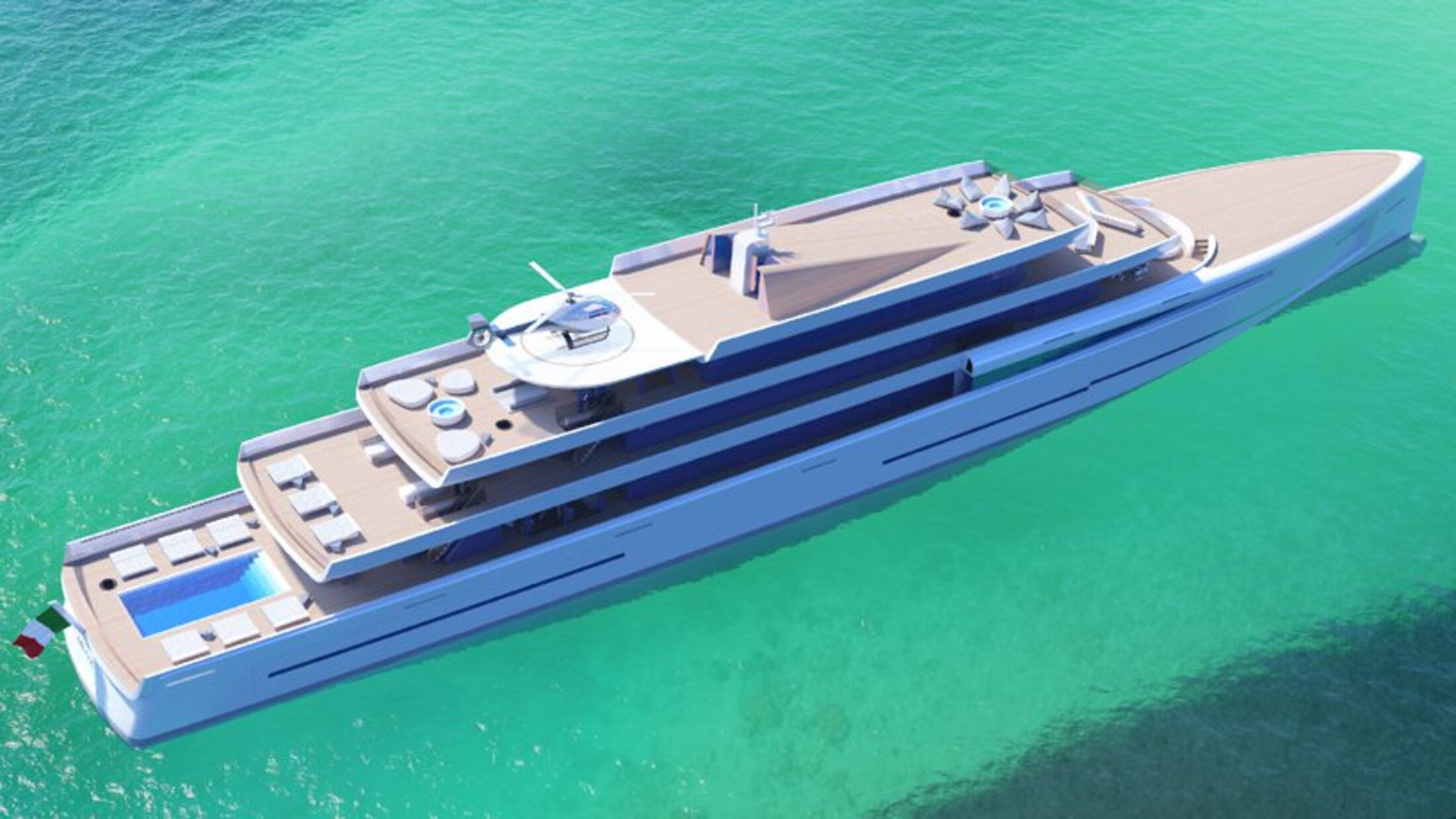Ce sont les sociétés Fincantieri en Italie et Van Geest en Hollande qui étudient depuis un an ce somptueux yacht ; ils prévoient encore trois années pour le construire. Le yacht comprendra six ponts, un héliport, un spa, un cinéma en plein air et un théâtre. Ses 4.200 tonnes pourront accueillir 43 personnes : 14 invités et 29 membres d’équipage (il faut cela pour un service de qualité à bord). Sa vitesse sera de 19 nœuds.