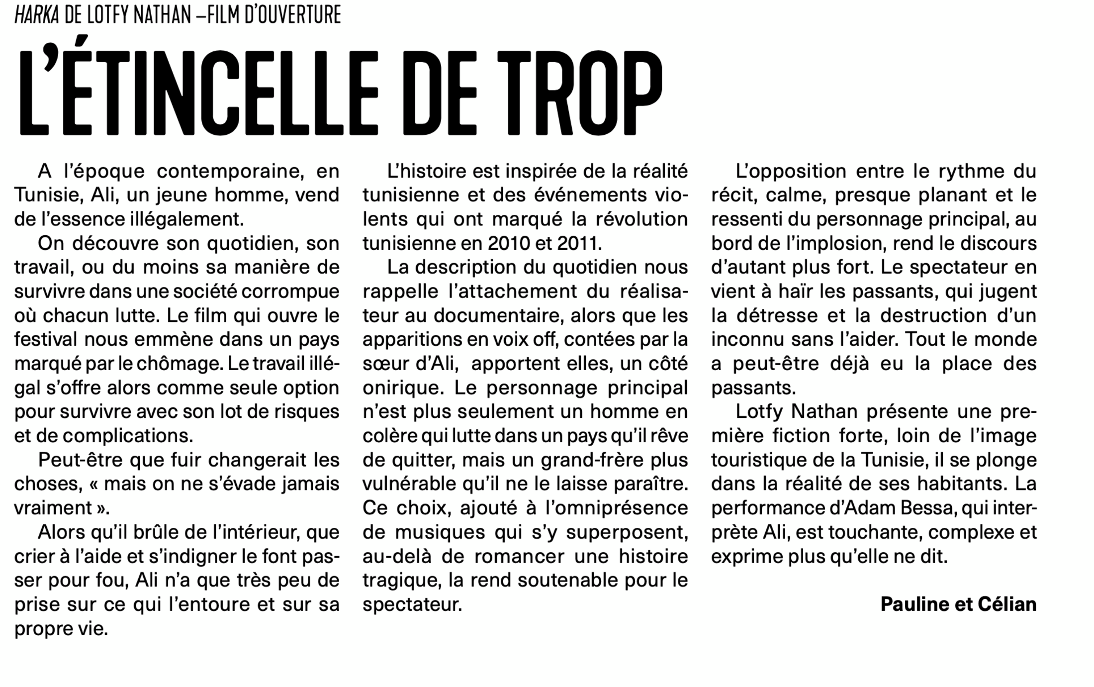 Les deux premiers jours du festival ont montré une vision enflammée de la société ! Le journal du festival, réalisé chaque jour par des étudiant.e.s de l’Université de Poitiers, vous y trouverez des critiques, interviews, brèves, comptes rendus.