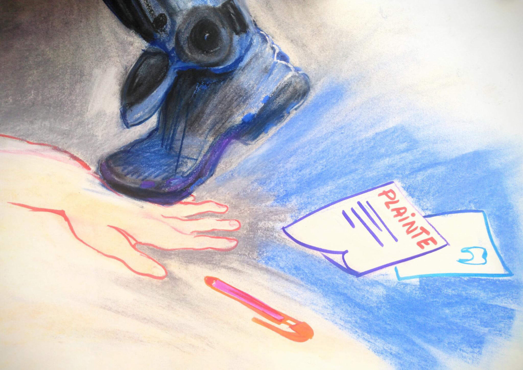 Lors de la plainte, enregistrée vers midi, l’accueil ne s’améliore guère : une deuxième policière « nous a dit qu’elle prenait la plainte parce qu’on insistait, mais que ce n’était pas le lieu adapté. Elle a dit : « mes collègues ont fait leur travail. Il faut arrêter de crier aux violences policières à chaque arrestation. Vous avez du culot de venir ici pour déposer plainte contre des collègues. Moi, si j’étais victime de violences policières, je ne viendrais pas chez leurs collègues ». Ensuite, quand Achour a commencé à raconter ce qui lui était arrivé, elle était de mauvaise foi, elle roulait des yeux, elle commençait tout de suite à défendre ses collègues. Quand il a expliqué qu’il avait une fracture du bout du doigt, elle a dit « C’est ce qu’on appelle violence policière ? C’est pour ça que vous êtes là ? Parce qu’on lui a marché sur la main ! Ça n’a sans doute pas été fait exprès ! Ce n’est rien du tout ça, une interpellation c’est toujours un peu brusque, le jeune s’est débattu peut-être c’est pourquoi il a sans doute été maîtrisé »