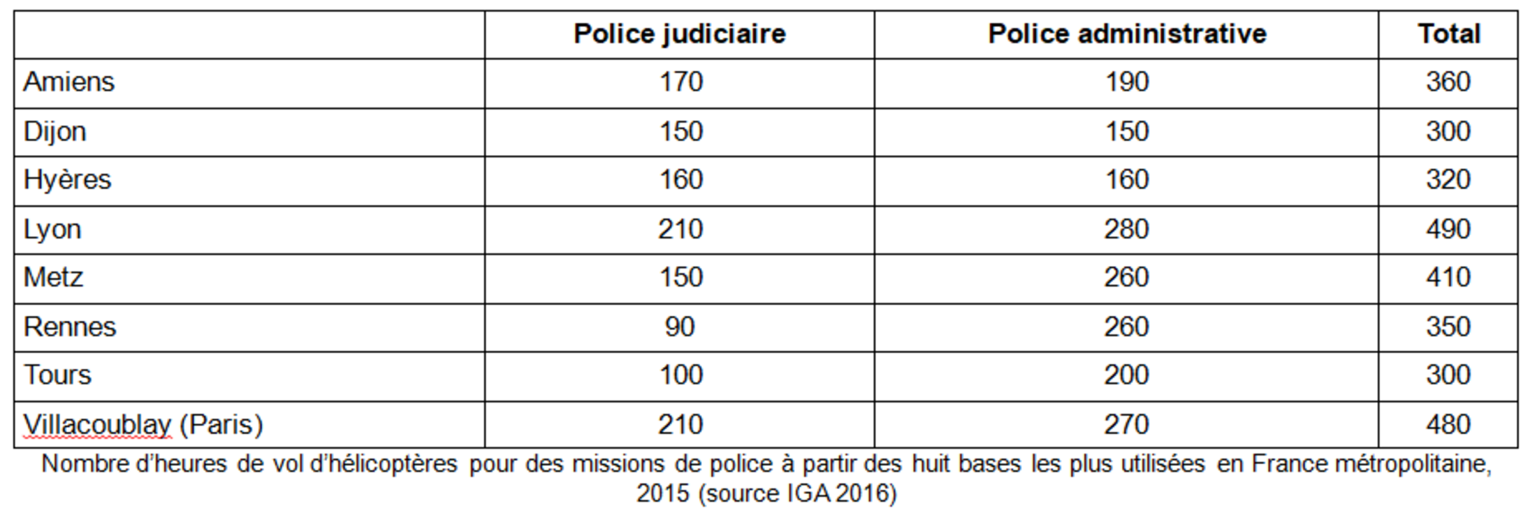 Le rapport de l’IGA publie pour 2015 le détail des interventions en hélicoptère de chaque base de gendarmerie. Et, surprise : Lyon arrive en tête des sorties pour des motifs policiers. Même Paris, agglomération sept fois plus importante que Lyon, à la vie politique et sociale autrement plus mouvementée, ne compte pas autant de sorties policières d’hélicoptère.