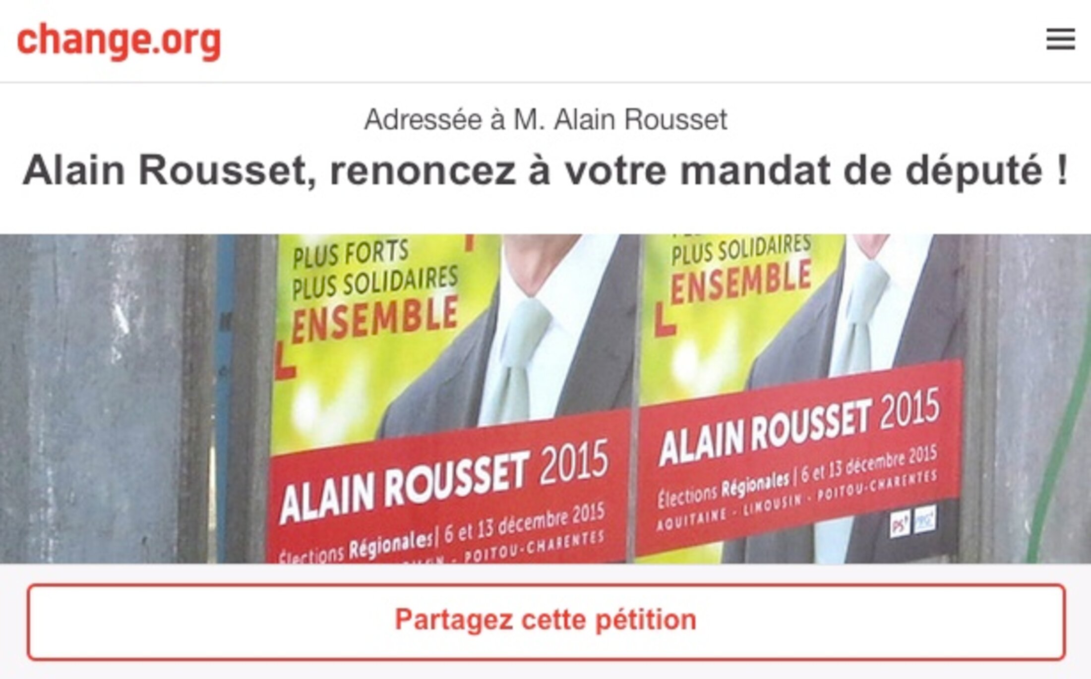 Alain Rousset, vous êtes devenu président d’une grande région, mais vous êtes également député de la Gironde. Citoyennes et citoyens de la région Aquitaine Limousin Poitou-Charentes, nous vous demandons avec force et conviction de renoncer à votre mandat de député, et de vous consacrer pleinement à la présidence de la région.