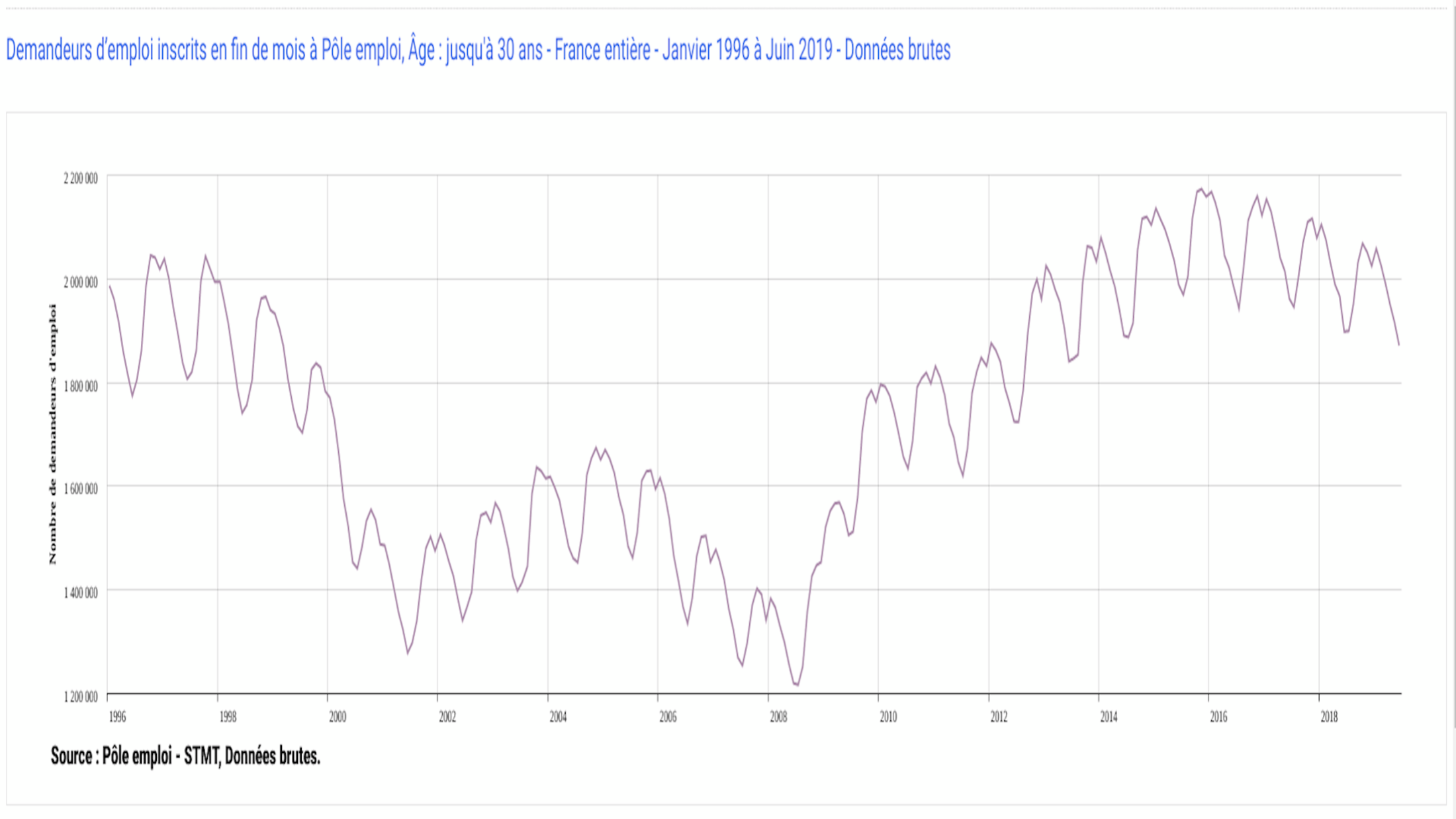 Aussi sur les données globales des inscrits demandeurs d'emploi de 1996 à 2019 :