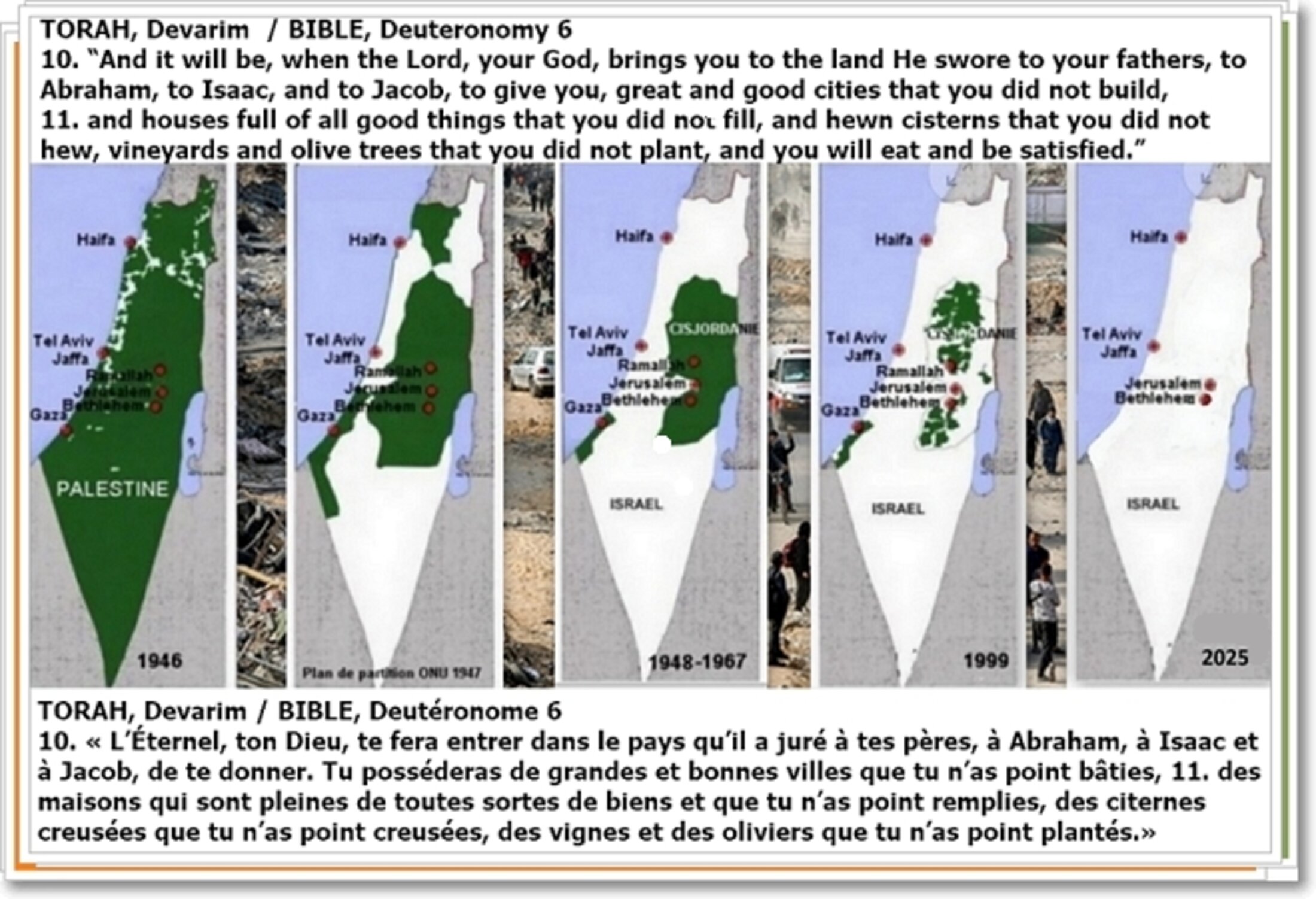 Et l’escroc patenté, criminel de guerre multirécidiviste Netanyahou, un peu qu’il peut le prouver ! Il lui suffit d’ouvrir sa Torah, mouiller son index boudiné et sélectionner « Devarim », nom hébreu du Livre du Deutéronome, cinquième et dernier Livre du Pentateuque, communément appelé « Ancien Testament », chap 6, pour attester que le génocide d’Israël sur les Palestiniens, en cours depuis 80 ans et sur le point de trouver sa conclusion tragique, est la volonté de Dieu. ...la suite sur fyr
