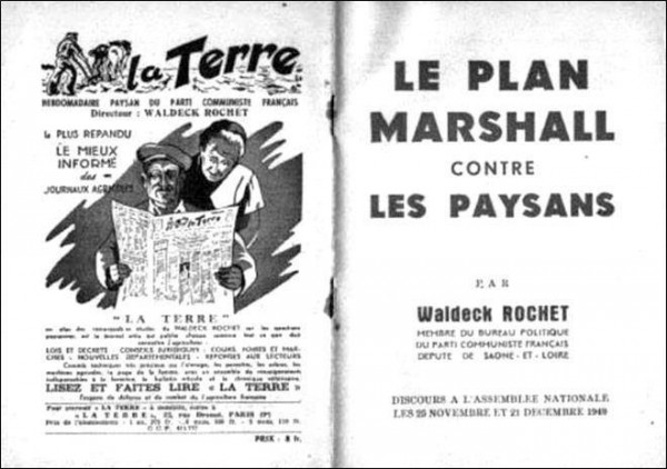 Léon Blum, envoyé à Washington pour examiner les propositions américaines, se porte garant, à son retour, du désintéressement des États-Unis… Alors que Maurice Thorez déclare en juin 1947, à Strasbourg : « Les capitalistes américains ont en vue d’étendre leur hégémonie sur l’Europe et le monde entier… La recherche des débouchés pour leurs marchandises coïncide avec la volonté de s’assurer des bases politiques à travers le monde. »