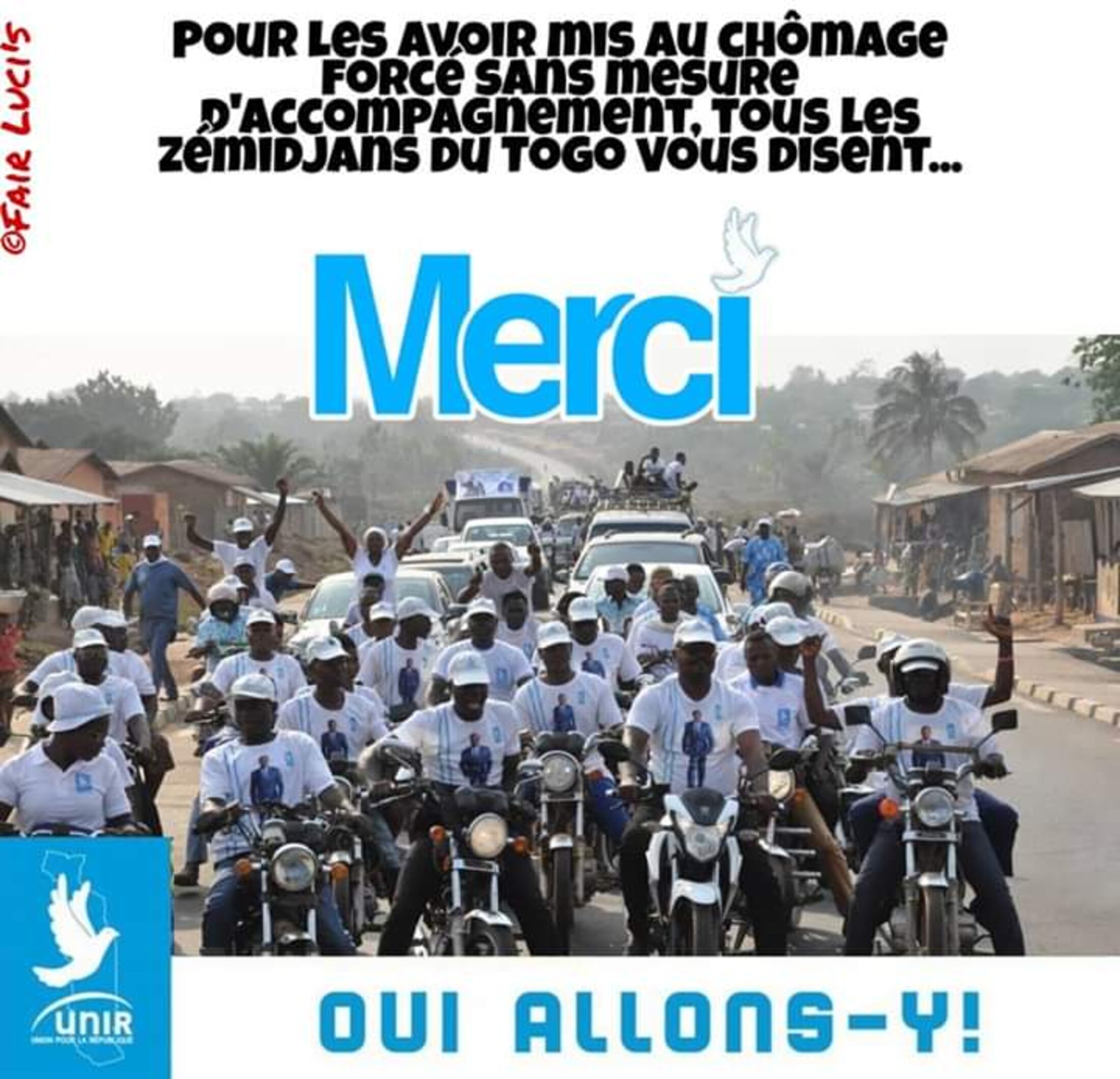 L’autre considération et non la moindre tient au fait que dans un marché de l’emploi fortement sinistré, notamment l’emploi des jeunes, un nombre important d’entre eux, même diplômés, se voit souvent contraint d’opter pour un emploi de zémidjan. Le Togo compterait 500.000 conducteurs de taxis-motos, dont 60.000 rien que pour Lomé.