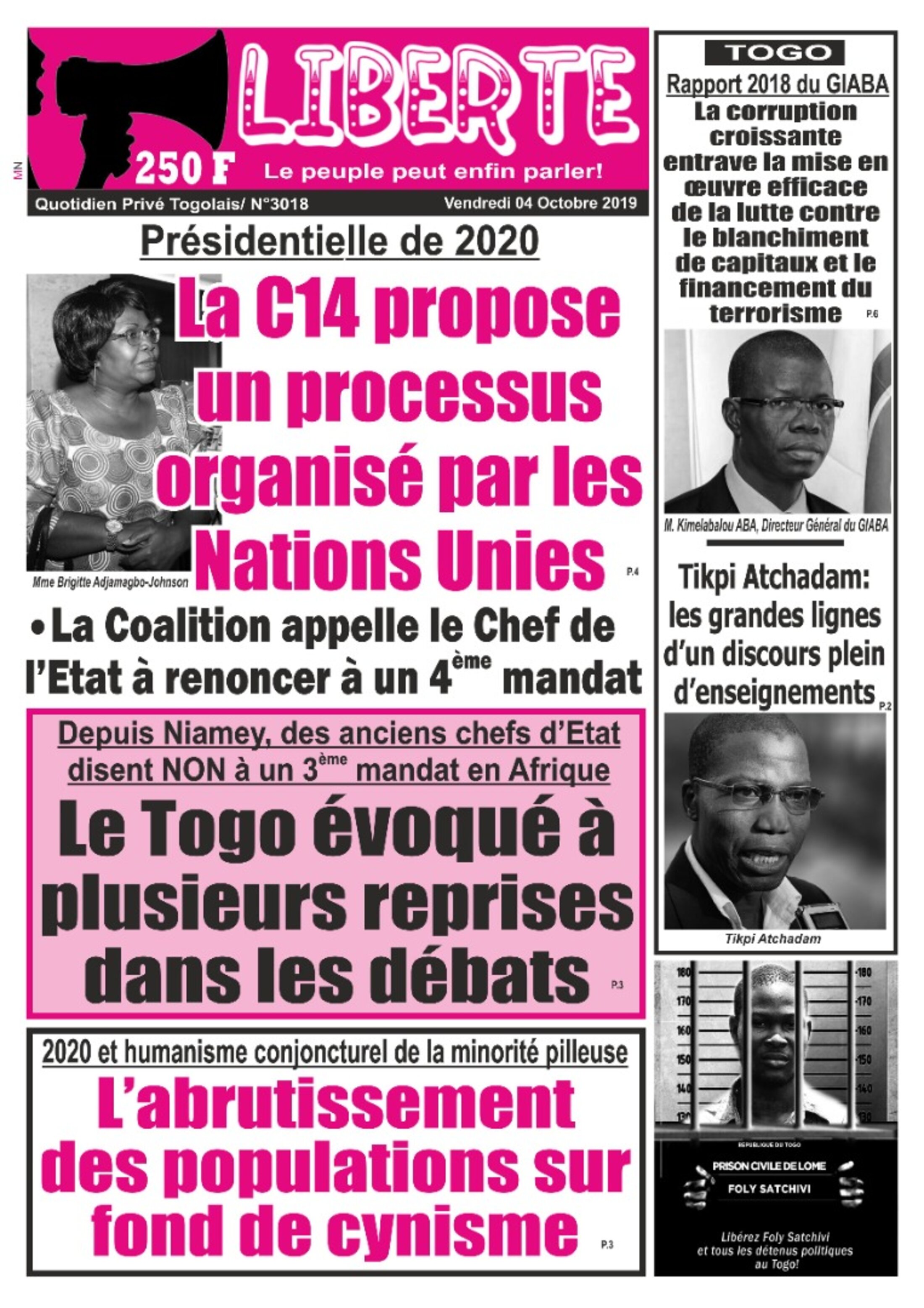 - XINHUA (2019). « Togo : des partis d’opposition demandent la supervision de l’ONU pour la présidentielle de 2020 ». In Xinhuanet.com. 4 octobre 2019. Accédé le 10 octobre 2019. Voir http://french.xinhuanet.com/2019-10/04/c_138447501.htm ↩