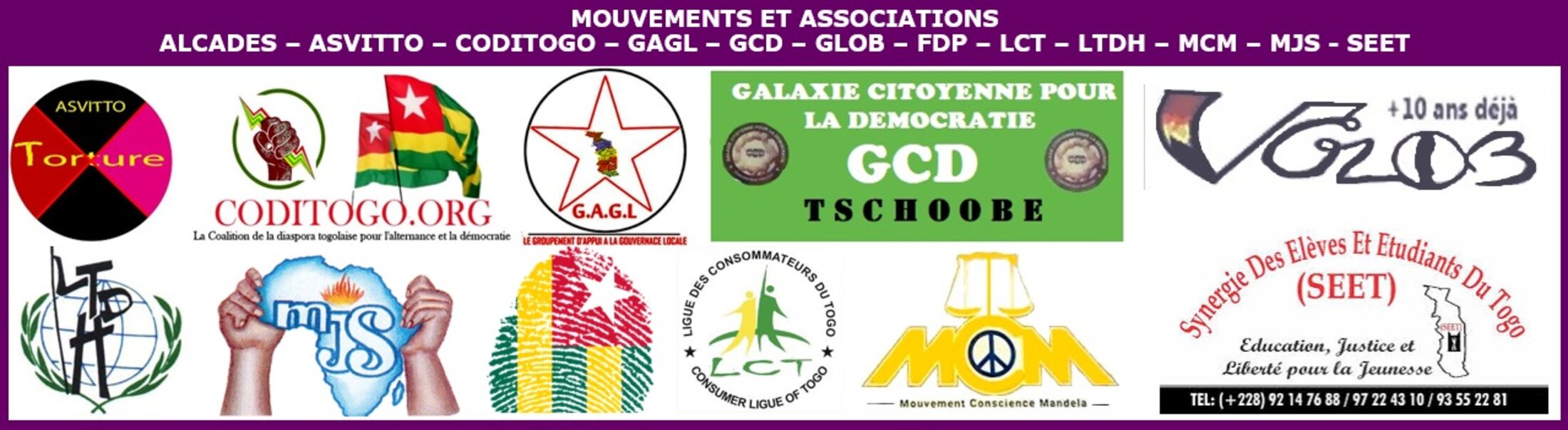LES ORGANISATIONS, MOUVEMENTS ET ASSOCIATIONS ALCADES – ASVITTO – CODITOGO – GAGL – GCD – GLOB – FDP– LCT – LTDH – MCM – MJS – SEET