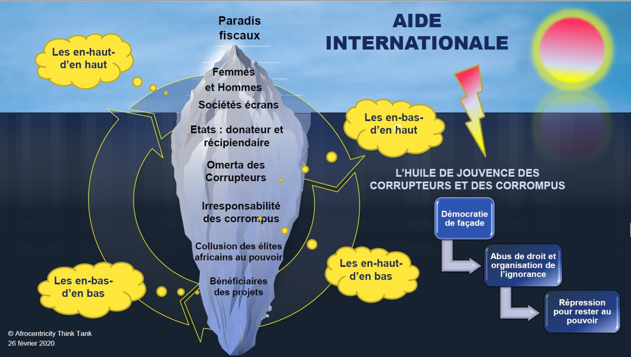 Aussi, l'aide au développement qui transite par les « aides budgétaires » sans obligation de résultats, finit même par financer des élections de la contre-vérité des urnes comme ce fut le cas du Togo le 22 février 2020 avec l'aide de l'Union européenne. De fait, l'aide sous forme de crédits ou d'assistances diverses, y compris militaires, pour maintenir au pouvoir des autocrates, véritables sous-préfets noirs en Afrique, finit sa course, de manière détournée avec subtilité, sur les comptes de sociétés-écrans appartenant à certaines élites proches du pouvoir central et peu soucieuses de l'amélioration du bien-être de leur population. Cette aide internationale est fournie, encore trop souvent par des corrupteurs, publics ou privés mal connus, grâce aux médias politiquement corrects et aux « fake news » sur les réseaux sociaux. Elle finit par creuser d'avantage le fossé des inégalités [4] tout en augmentant le niveau d'impunité pour les corrompus.