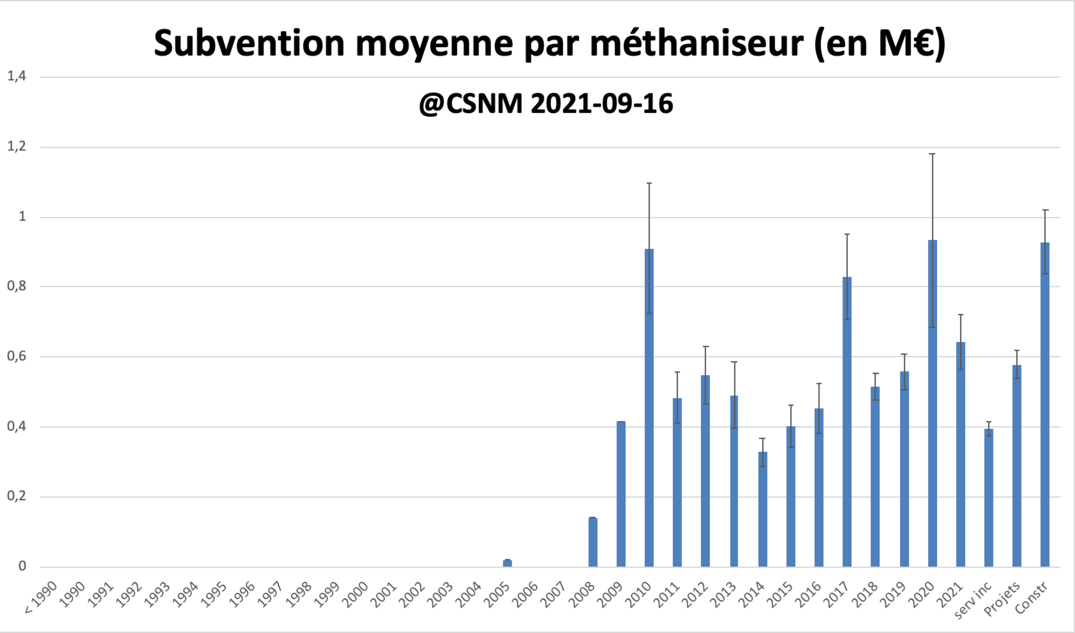 Figure 2 : Subvention moyenne par méthaniseur à la date de mise en service