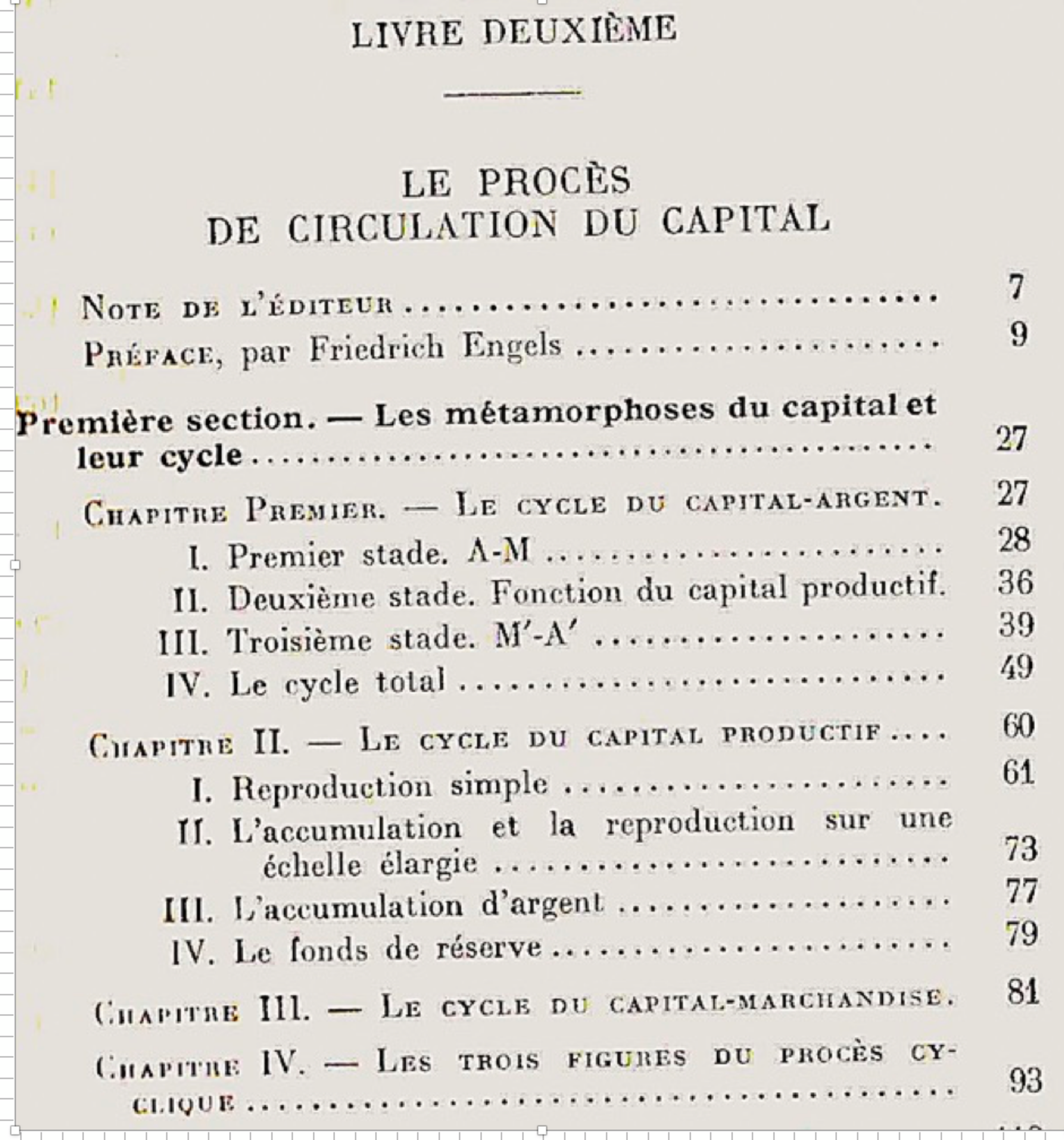 Plan du début Livre II du Capital de K. Marx, Paris, Éditions sociales, 1960