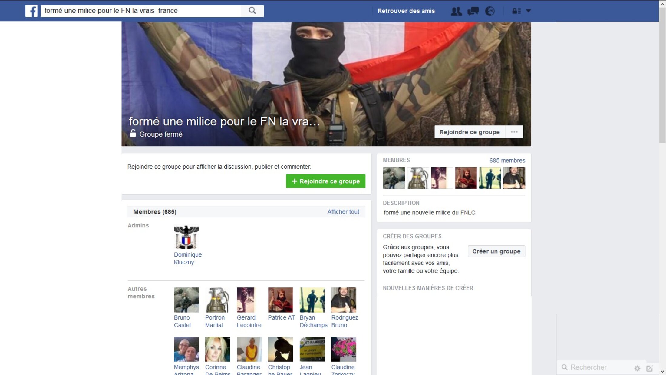 Réponse de Facebook au signalement de cette page :