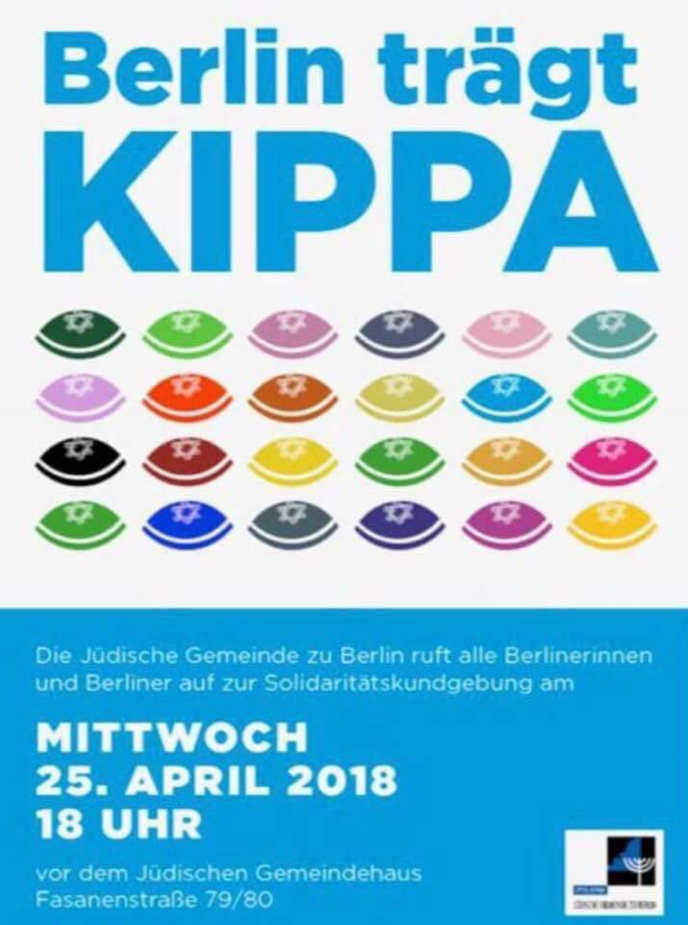Le Conseil central des Juifs a déconseillé aux individus de porter la kippa dans les grandes villes après l’acte antisémite du 17 avril. Mais les rassemblements aujourd’hui avec le port démonstratif de kippa s’inscrit dans ce qu’a déclaré le Président du Conseil central des Juifs d’Allemagne, Josef Schuster qui n’a rien à voir avec le Président du CRIF : « Si on ne réussit pas à contrer l’antisémitisme non-dissimulé, alors on mettra en péril notre démocratie, parce qu’il ne s’agit pas seulement de l’antisémitisme, cela va de pair également avec le racisme, cela va de pair également avec la xénophobie, il faut un STOP clair ».