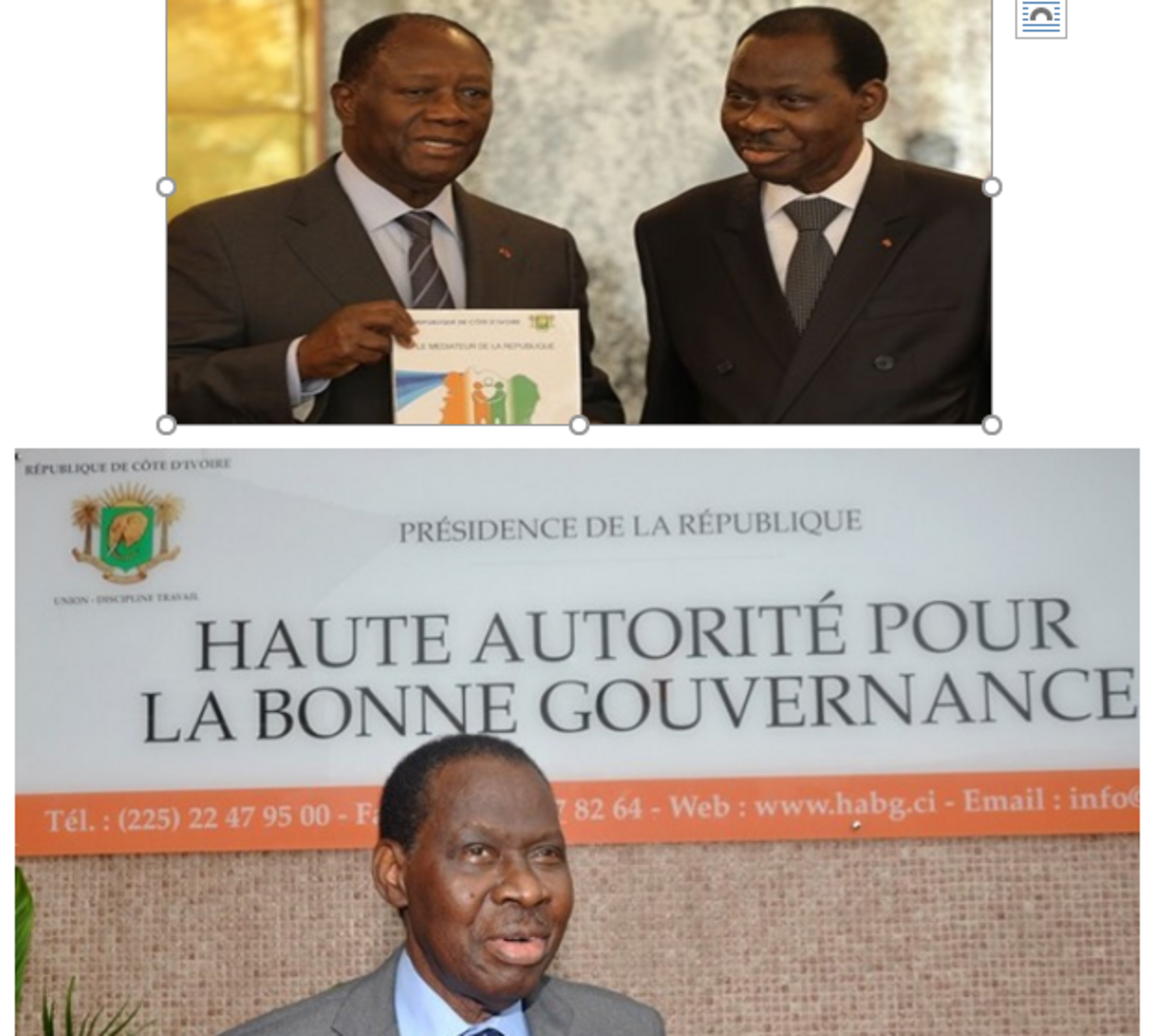 L’affaire implique messieurs Amia, le faux propriétaire-vendeur, Me Kouadio Kouakou Gilbert le notaire qui a couvert le faux, M. Yoboué Kouamé, le directeur de la Conservation de la Riviera au moment des faits, et finalement, la Haute Autorité de la Bonne Gouvernance dirigée par Monsieur N’golo Coulibaly, proche parmi les proches du Chef de l’Etat Alassane Dramane Ouattara. Aujourd’hui, l’affaire est en cours devant les tribunaux, mais la notoriété et l’influence de la HABG menacent clairement d’expropriation l’incontestable propriétaire de ce terrain, Madame Ben Aminata Olayide, qui a besoin de la solidarité de toutes les bonnes volontés ivoiriennes et internationales, pour faire connaître l’affreuse injustice dont elle est victime !