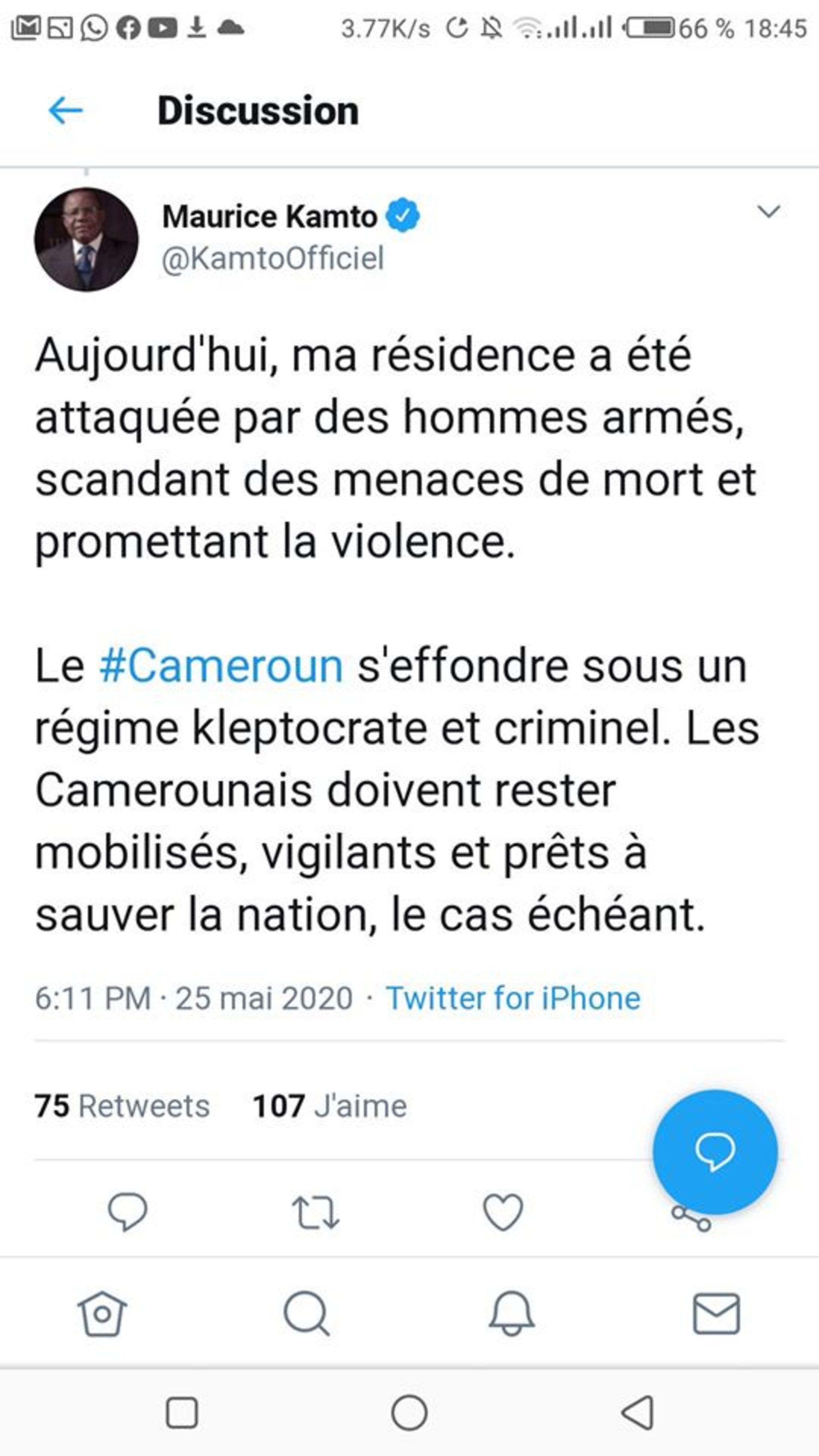 Hier 26 mai à Yaoundé, le Président élu du Cameroun, le Professeur Maurice Kamto, a été victime d'une tentative d'assassinat à son domicile, de la part de partisans armés du régime de l'autocrate Paul Biya. Le Président élu du Cameroun n'a dû son salut qu'à la mobilisation spontanée des populations locales, qui ont réussi à mettre les assaillants en débandade.