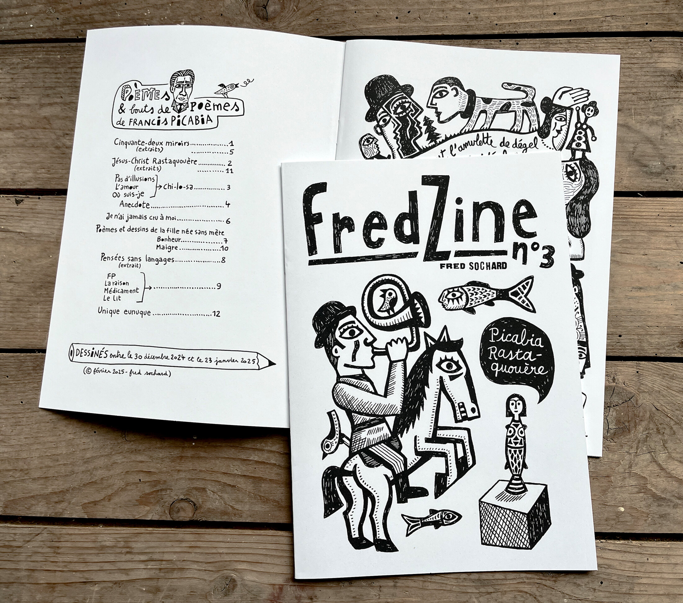 Le fredZine n° 3 est dispo : des poèmes et bouts de poèmes de Picabia dessinés.