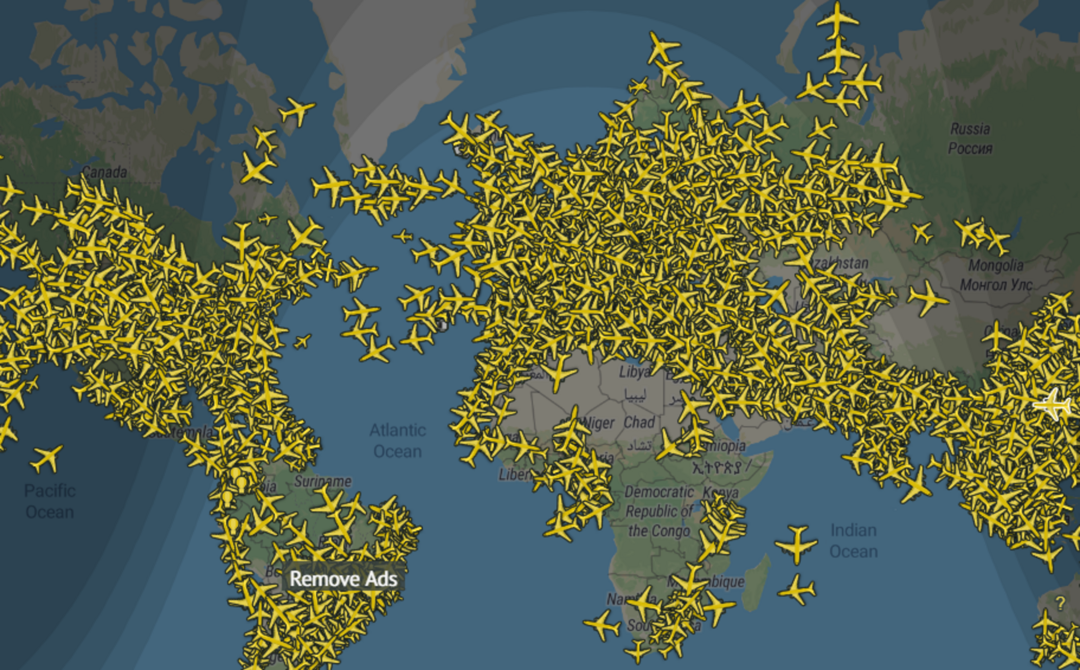 Relevé des avions dans le ciel le 16 janvier à 13h (heure française). Qui était dans ces avions pour aller où et pour y faire quoi ?