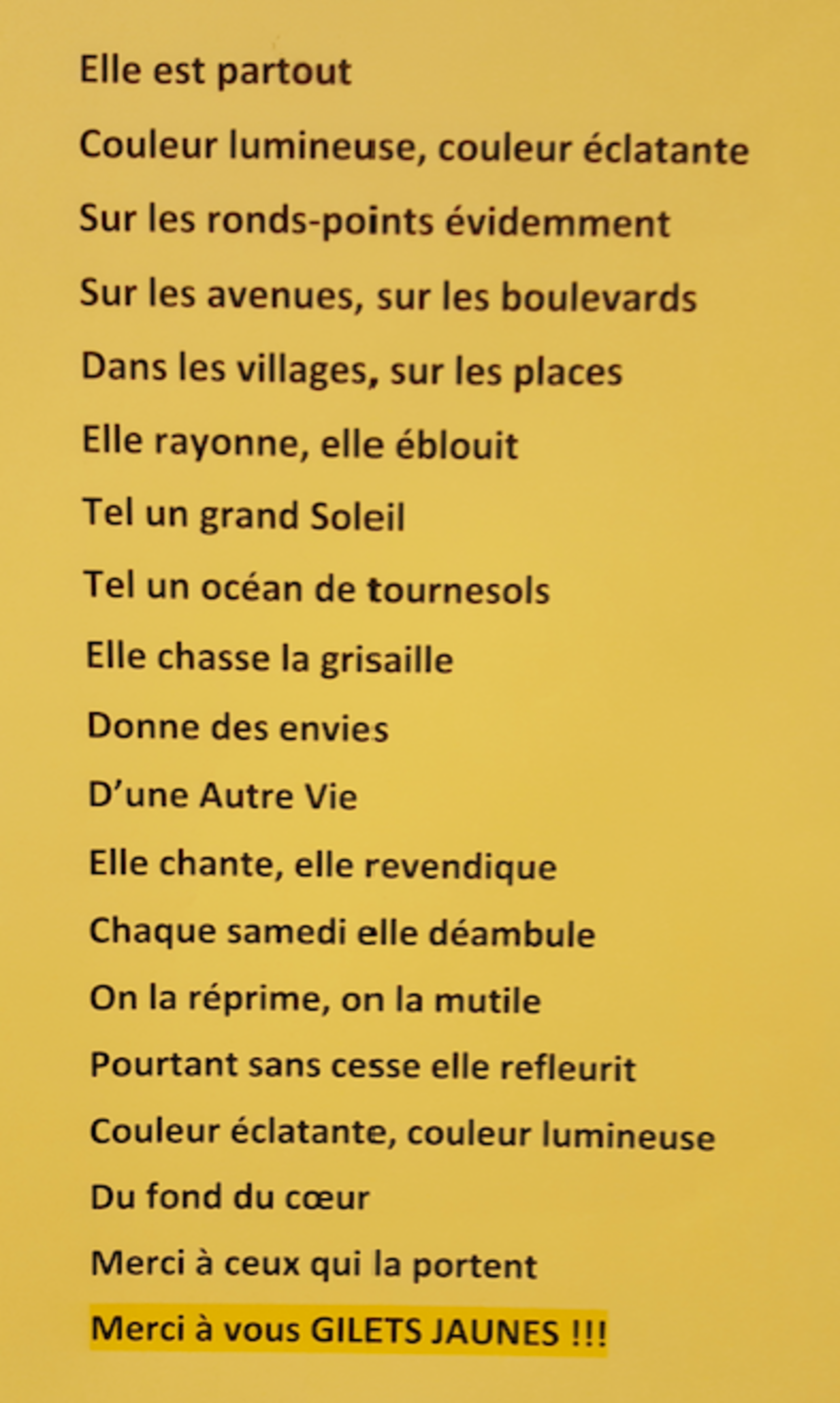 Ce n'est pas comme ces petits français qui s'habillent en jaune certains soirs et surtout le samedi en mangeant des merguez, en prenant ensemble un petit pastis pour se tenir chaud et surtout se donner du chaud au coeur. Ils n'y sont pas : c'est bien au chaud qu'il faut apprendre à vivre et ce n'est pas donné à tout le monde.