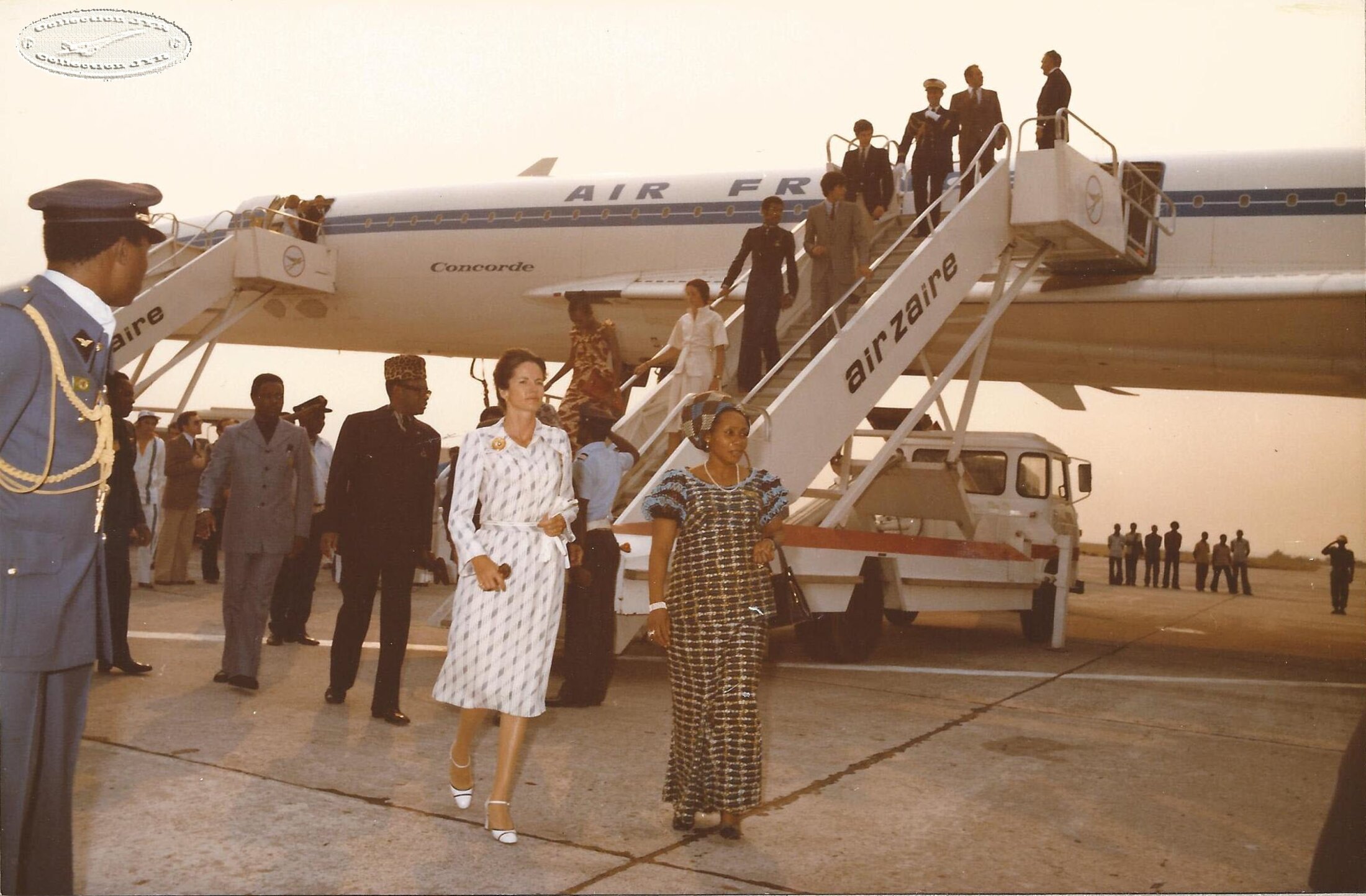 C'est à bord du Concorde, vol 070875 F Paris-Kinshasa que le président Valéry Giscard D'Estaing accompagné de son épouse débarquent au Zaïre de Mobutu. Nous sommes en août 1975. Valéry Giscard d’Estaing est en visite officielle, de deux jours, à Kinshasa. Il a fait le voyage en Concorde. C'est pour la première fois que des les Zaïrois découvrent l'avion supersonique le Concorde. Lors qu’il atterrit à Ndjili, le président français Giscard donne à son ami Mobutu l’opportunité de visiter l’intérieur du supersonique avec son épouse Mama Sese.