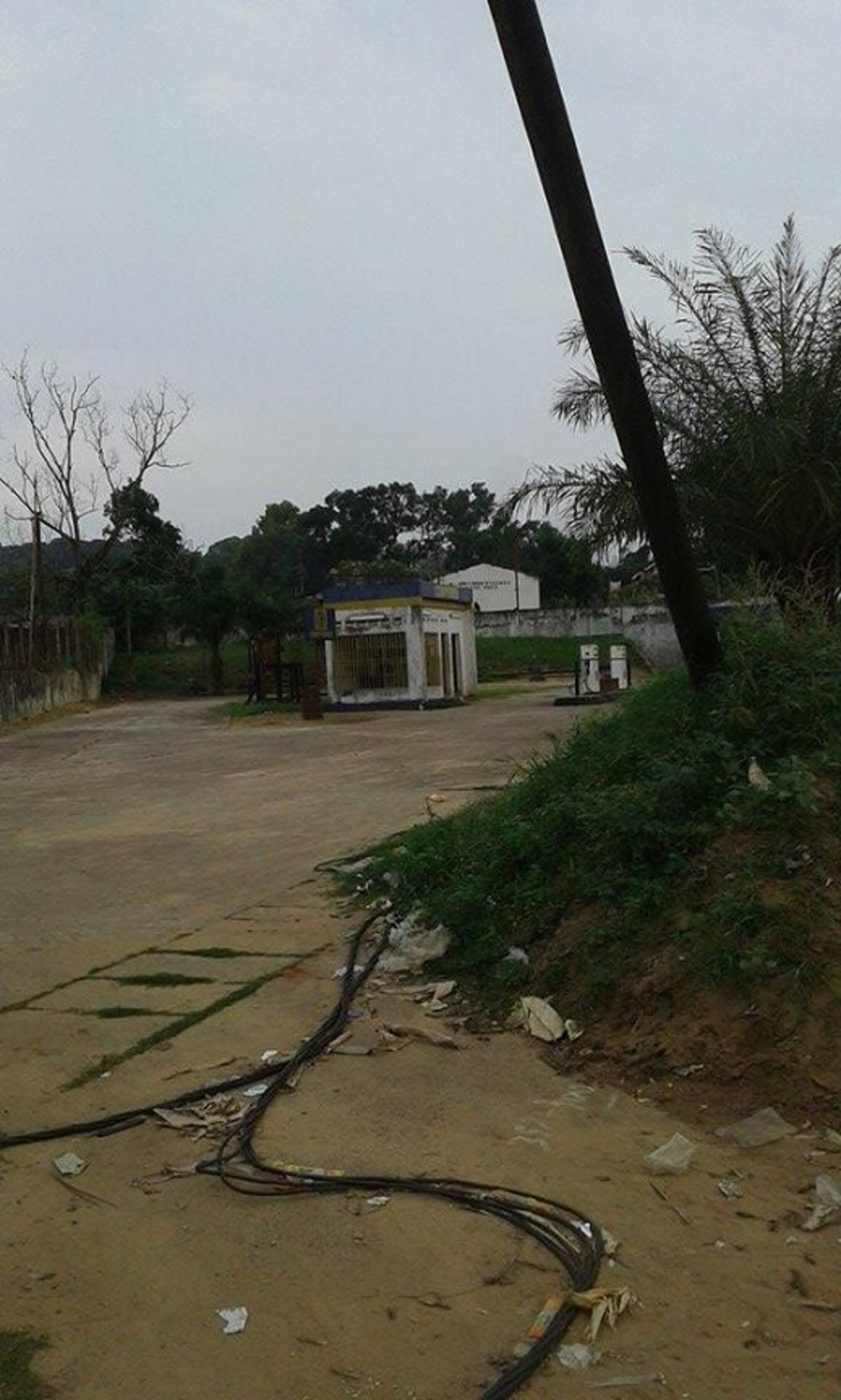 A proximité du marché de Masimanimba, il y a la station des carburants Cohydro qui n'a jamais fonctionné. La dangerosité des câbles électriques pendantes non loin des commerçants n'inquiète pas la conscience de Kin-Key Mulumba "Debré Mpoko" !