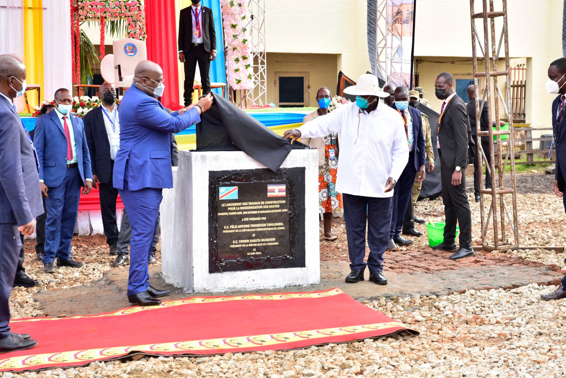 L'Ouganda condamné par la Cour internationale de justice de la Haye, à payer 10 milliards de dollars pour la guerre de six jours, qui est une succession d’affrontements meurtriers entre l'armée ougandaise et rwandaise, deux armées d'occupation, à Kisangani du lundi 5 au 10 juin 2000 en République démocratique du Congo. Et l'Ouganda veut construire des routes au Congo, sans payer les 10 milliards de $ ? L'ougandais Yoweri Museveni et Tshilombo Tshintuntu ont procédé mercredi 16 juin dernier, à la pose de la première pierre des travaux d’un important réseau routier censé permettre à l'Ouganda de mieux piller les ressources du Congo. C’est le poste frontalier de Mpondwe-Kasindi qui a servi de point de rencontre pour la matérialisation de ce vaste chantier qui couvrira 223 km de routes à réhabiliter ou à construire entre l’Ouganda et la République démocratique du Congo (RDC). Celui-ci comprend trois principaux axes : Mpondwe-Kasindi-Beni (80 km) ; Bunagana-Rutshuru-Goma (89 km) et Beni-Butembo (54 km). Tshilombo vend le Congo pour ses intérêts personnels. Pour construire les routes, la RDC a besoin que l'Ouganda, pays envahisseur puisse le faire à sa place ? Ce que Tshilombo Tshintuntu ne dit pas, ces trois axes routier, c'est pour faciliter la sortie des matières premières du Congo pour l'Ouganda.