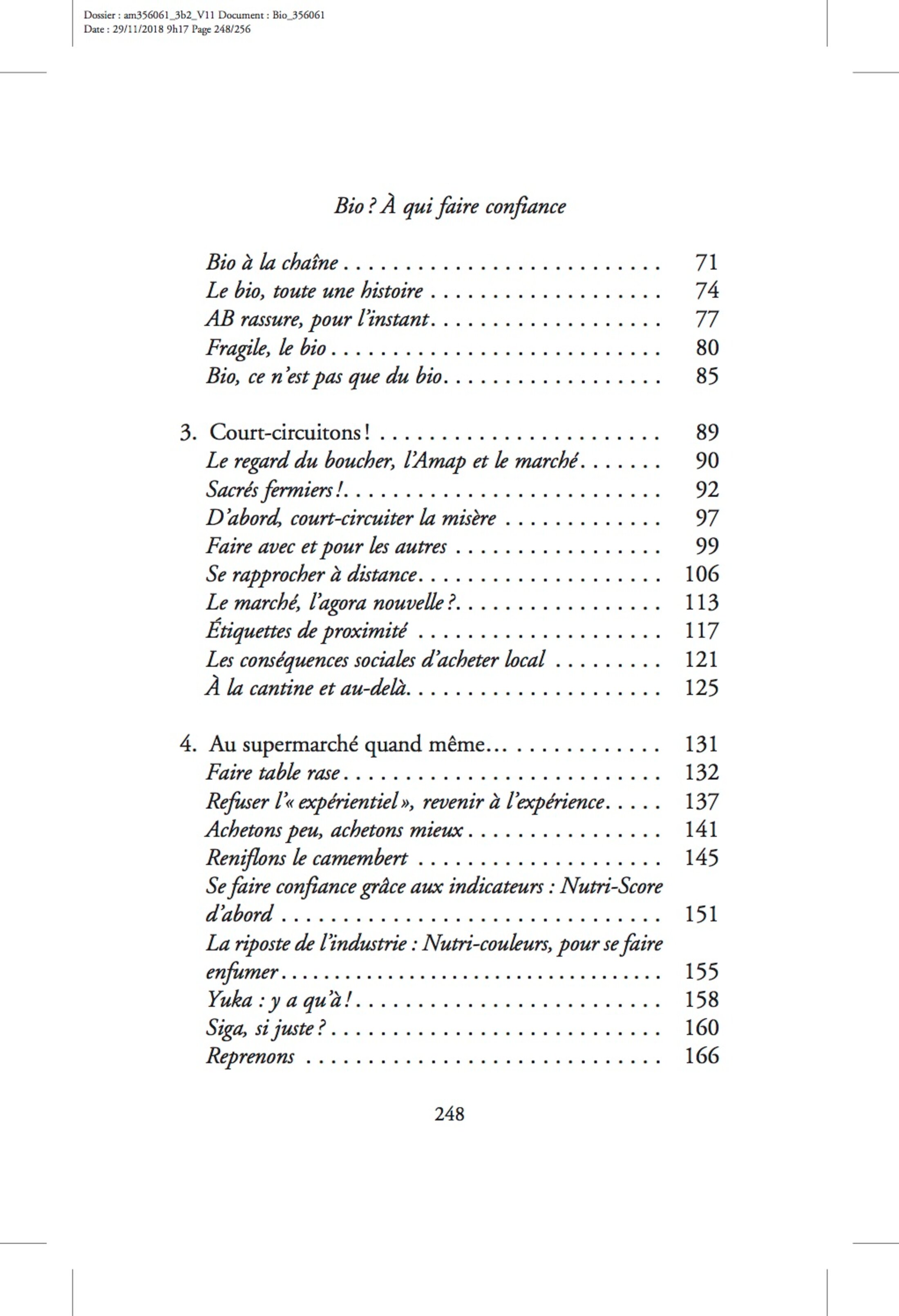 J’ai exploré le monde des GMS, celui de l’industrie alimentaire et cosmétique, le bio - bien entendu, les circuits courts et les magasins de producteurs, les régimes « sans », le véganisme, mais aussi les associations d’aide alimentaire, les labels et les app., le monde agricole qui s'adapte et les scientifiques (toubibs, anthropologues, préhistoriens, psys, agronomes…) qui savent remettre l’alimentation dans son contexte, les discours, enfin.