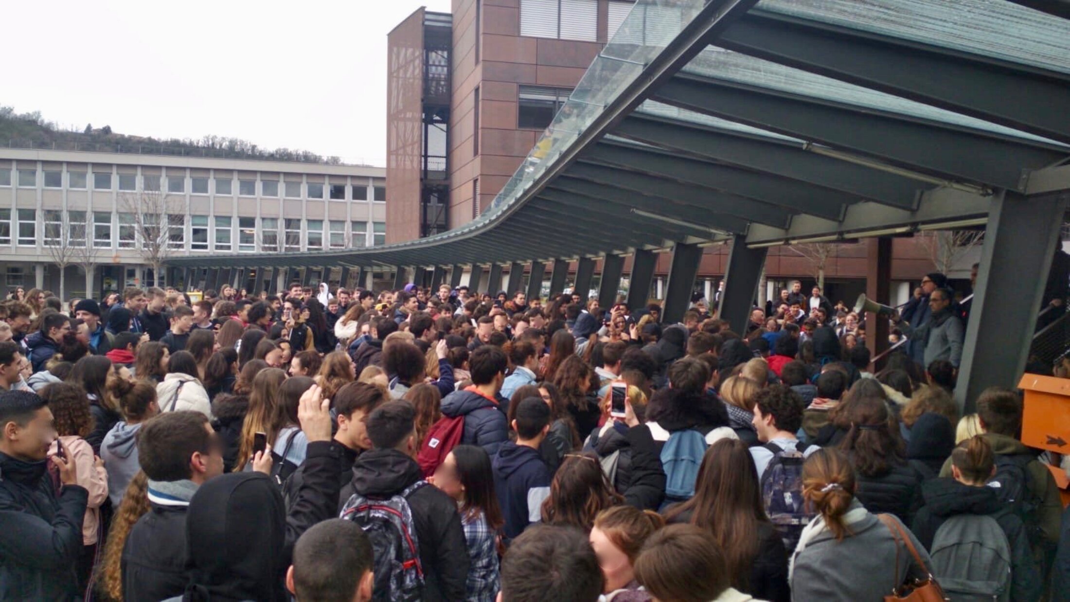 ont été passées un nombre variable de fois en fonction de la décision des surveillant-es ; parce qu'il y avait des mouvements contestataires dans les couloirs, les salles de classe ont été fermées à clef, les élèves bloqué-es à l'intérieur ; les sonneries des alarmes à incendie ont été désactivées.