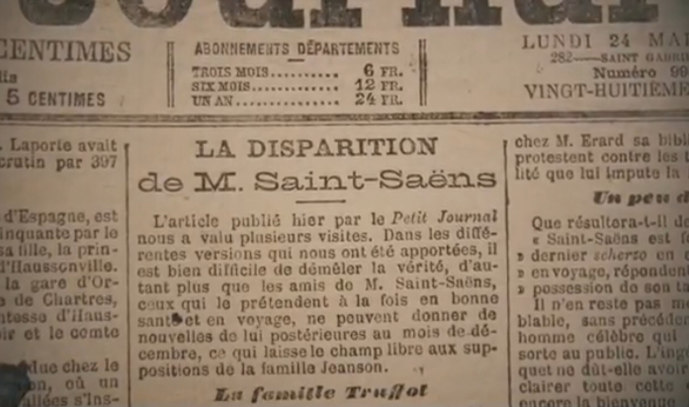 Charles Camille Saint-Saëns (1835 - 1921), pianiste, organiste, compositeur célébré sur toute la planète, contemporain de Liszt et de Wagner, à défaut de posséder un submersible a les facilités pécuniaires pour prendre la poudre d’escampette, disparaître sobrie, ce soir de décembre 1889. Sa mère adulée est morte un an auparavant, sa tante protectrice qui l’avait initié à la musique (révélant bientôt un enfant prodige qui arpentera tous les salons en vue tel un singe savant) est partie également. Aucune attache familiale ne le retient plus, sa séparation d’avec sa femme étant actée depuis longtemps, tout comme la disparition en bas âge de ses deux enfants. L’atmosphère crépusculaire qui a gagné la capitale française n’aidant guère en plus à combattre sa dépression naissante, sa lassitude des honneurs, des jeux et cancans parisiens.