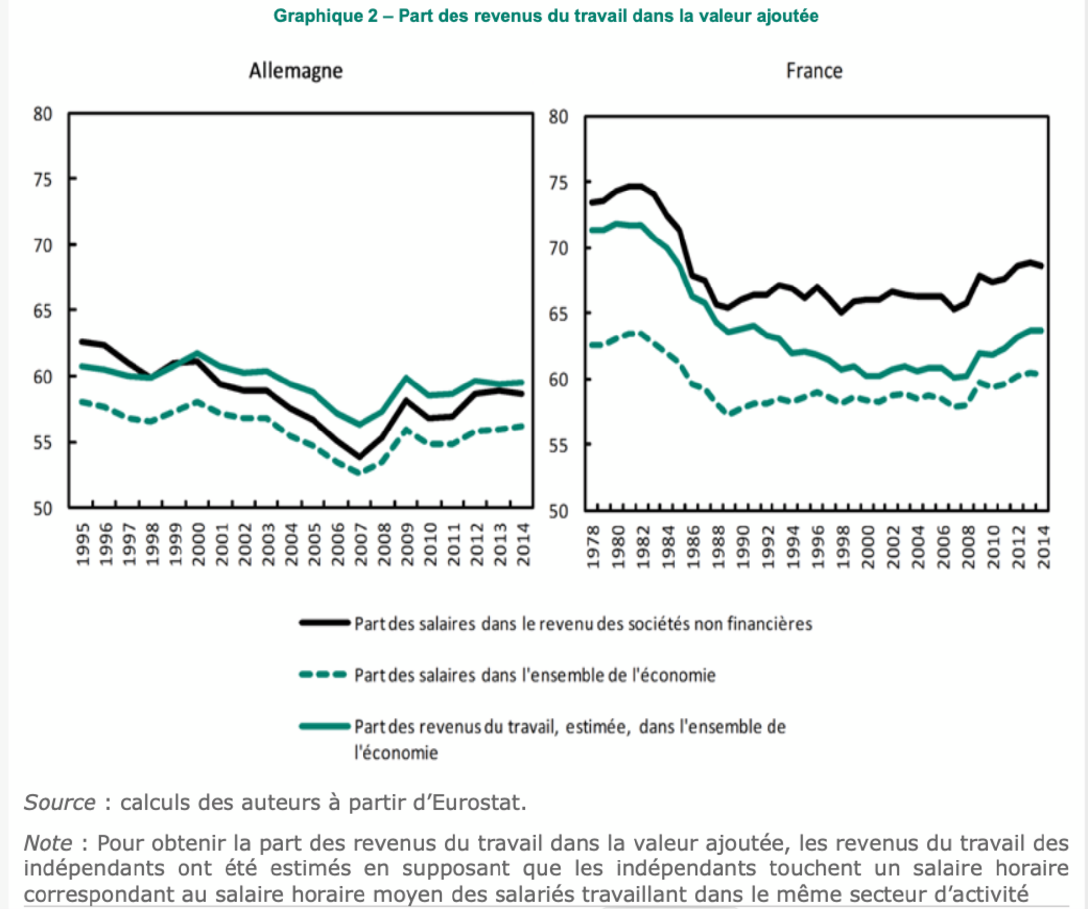- note de l'OCDE de 2012 (3) indiquant : « Sa valeur médiane est passée de 66.1 % au début des années 90 à 61.7 % à la fin des années 2000, et dans certains pays ce fléchissement s’était amorcé plus de 30 ans plus tôt »