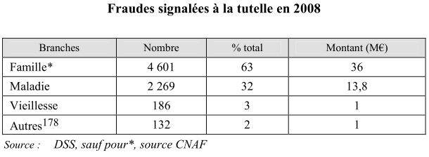 Soulignons que le budget global de la branche famille était de 30 milliards d'euros en 2010, les fraudes représenteraient donc environ 0.5% du budget total.