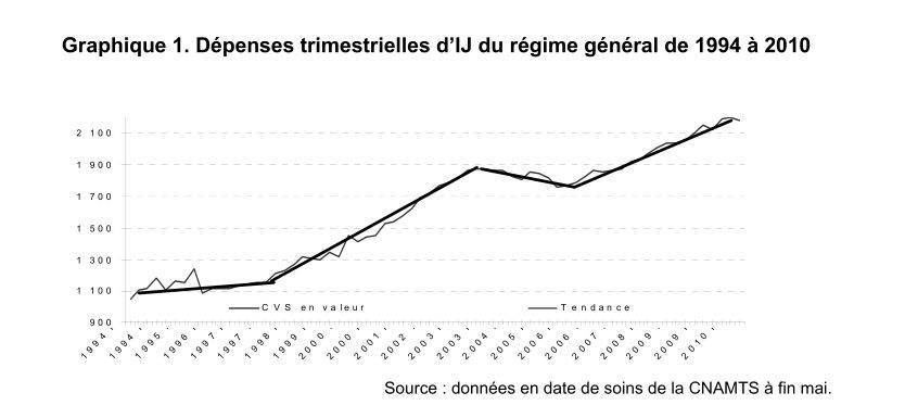 Dans son RCSS 2010 le gouvernement s'alarme de la progression des dépenses d'IJ, qui ont augmenté de 4,2% par rapport à l'exercice 2009. Techniquement il s'agit d'analyser la dynamique des indemnités journalières, le rapport souligne deux facteurs pouvant expliquer cette hausse: