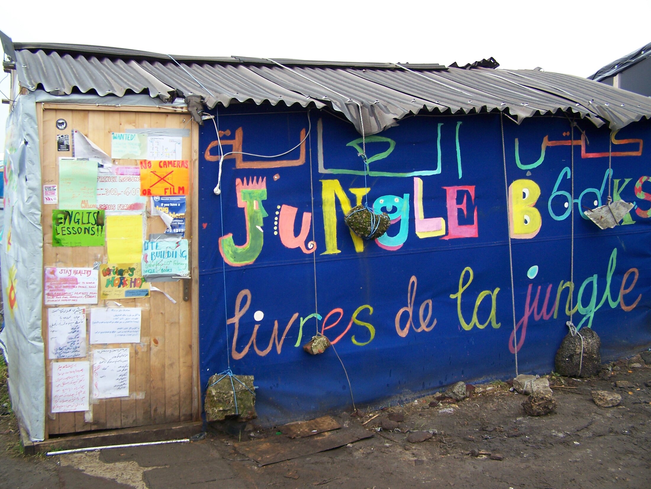 Sur un poteau solitaire à l’entrée de la jungle, près du pont de la RN 216 qui mène au terminal ferry de Calais, l’arrêté préfectoral est agrafé. On peut y lire : « Il est fait commandement aux occupants sans droit ni titre du site dit de « la Lande » de libérer de toutes personnes et de tous biens l’emprise située dans la zone dite « sud » du camp (…) au plus tard le mardi 23 février à 20 heures ». A-t-on vu le début d’un déménagement, samedi après midi trois jours avant l’heure dite ? Non. Des inquiétudes quant à ce qui va réellement se passer mardi soir ? A peine plus. Pour en avoir le cœur net, deux bénévoles d’une associations d'aide aux migrants ont frappé aux portes des shelter, ces petits refuges en planches et bâches bleues, grises ou noires qui peuplent le bidonville, jouxtant buissons, immondices et boue. Entre musique et thé offert de bon cœur, les migrants sont au courant de l’arrêté de démantèlement, mais demeurent flegmatiques. A croire qu’ils sont déjà Anglais, alors que l’espoir s’amoindri de jour en jour. « On essaie de sortir toutes les nuits », disent ces Syriens dans leur petit shelter capitonné de tissus aux couleurs du club de football de Bradford. « Mais on craint de plus en plus de se faire taper par les fachos. Et quand il pleut trop, on ne sort pas. » Les « fachos » sont des habitants de Calais, excédés par la présence des migrants et qui s’organisent en milice plus ou moins structurées, traquant les migrants dans les rues ou aux alentours de la jungle. Un groupe Facebook, les vrais Calaisiens en colère, regroupe plus de 3500 personnes. Les Calaisiens en colère en regroupent 66.485. Sauvons Calais : 20.745. Parce qu’ils sont habillés en noir et portent des rangers, les migrants les confondent avec la police. Au début du mois de février, plusieurs cas de migrants passés à tabac ont alerté les ONG comme Médecins du Monde (MDM) ou Médecins sans frontières (MSF). Des plaintes ont été déposées.