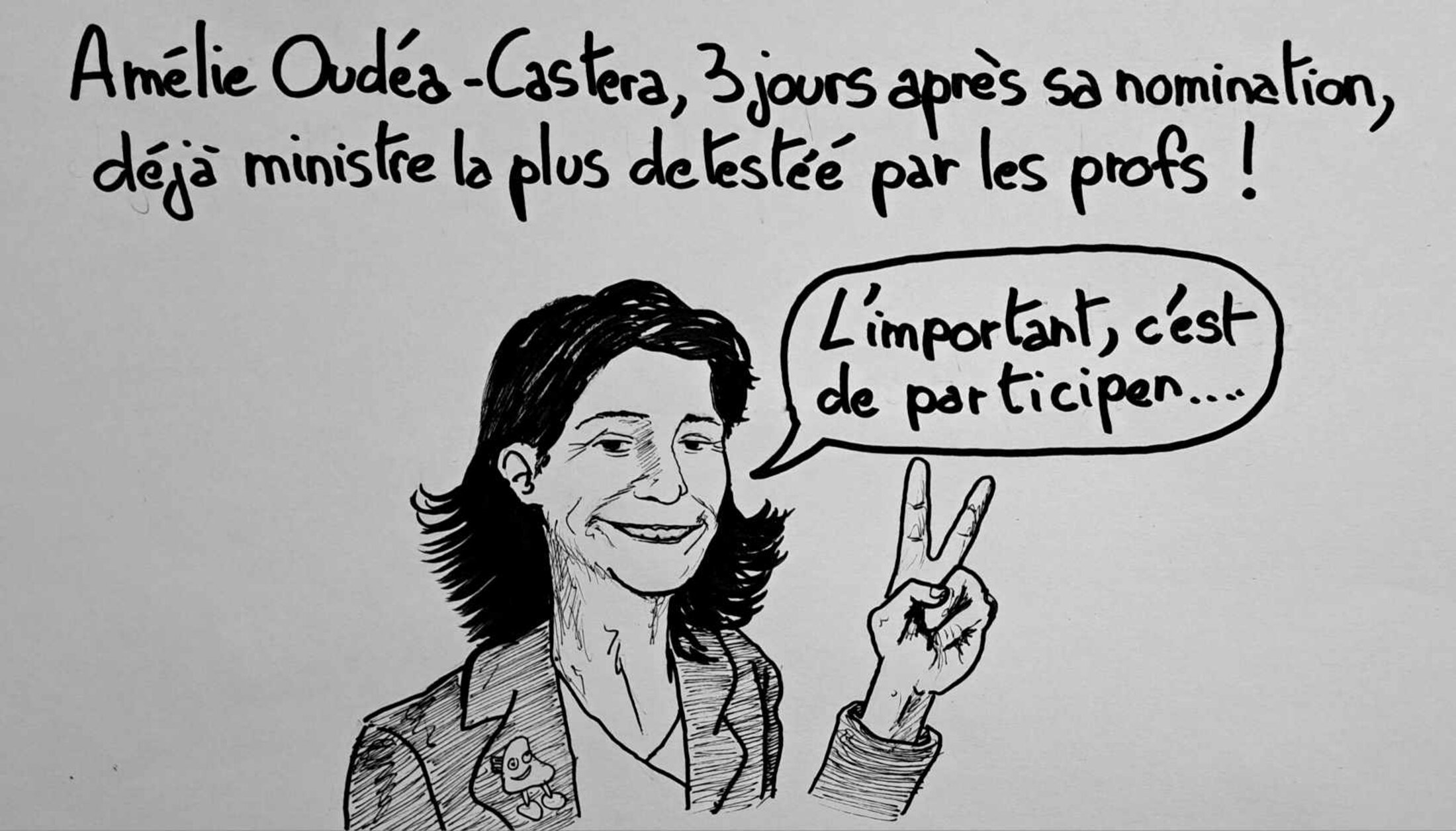 Le lendemain de sa nomination rue de Grenelle, Amélie Oudéa-Castera a raconté, en quelques phrases bien choisies, l’histoire d’une école où les profs sont trop absent.es. Une histoire fausse bien entendu mais qui laissera des traces dans l’imaginaire collectif … ou bien suscitera suffisamment de colère pour forcer sa démission. La ministre montera-t-elle alors sur le podium pour recevoir sa médaille d’or des ministres ayant eu la plus petite durée d’exercice de la 5ème République[9] ?