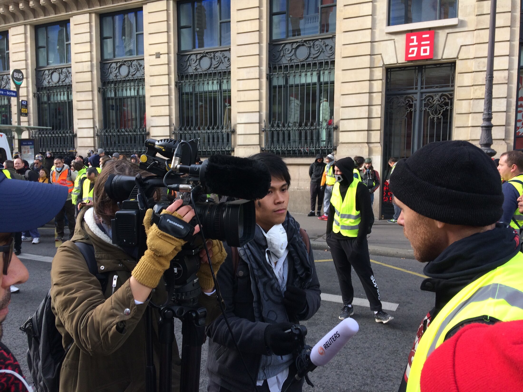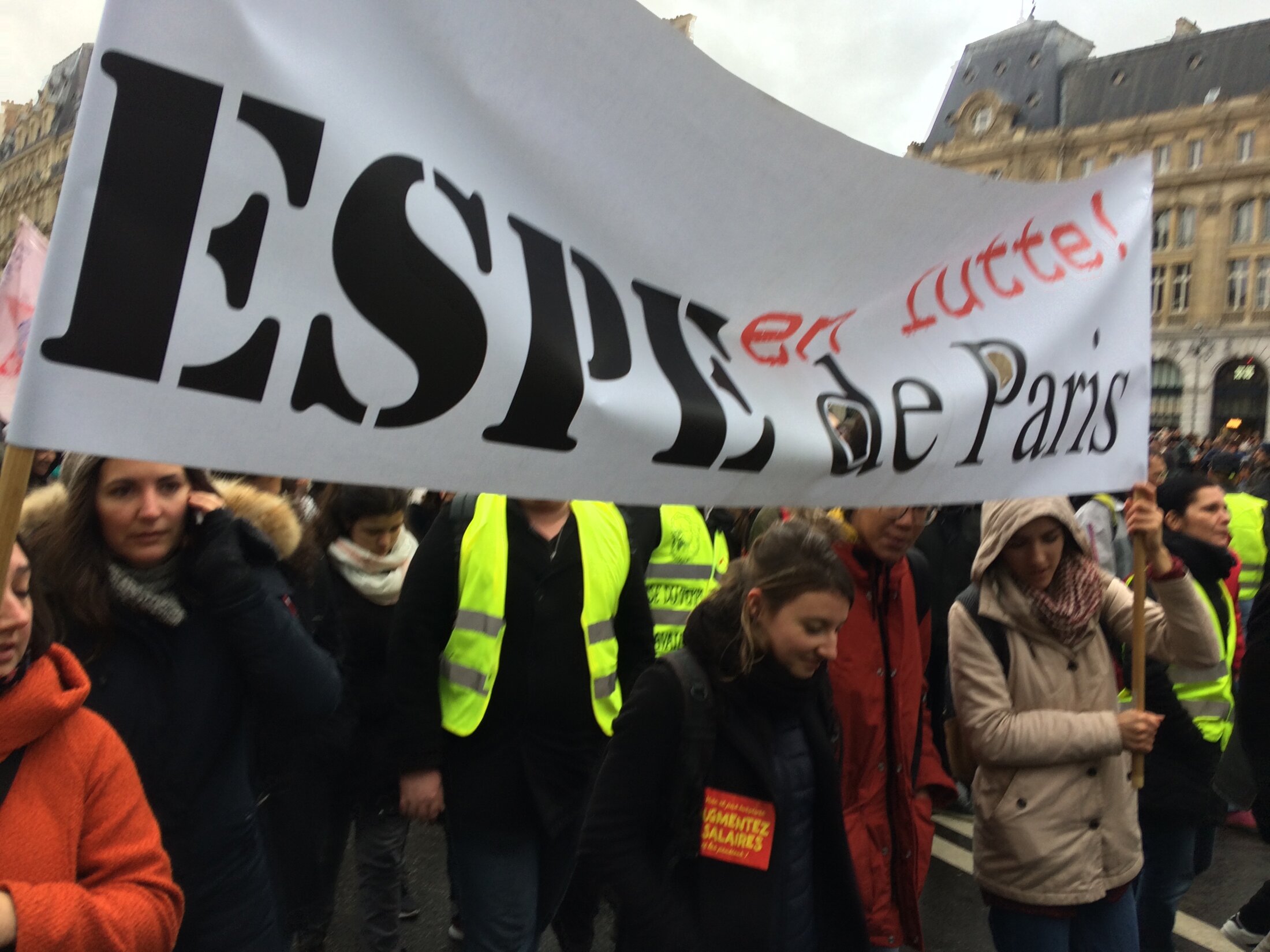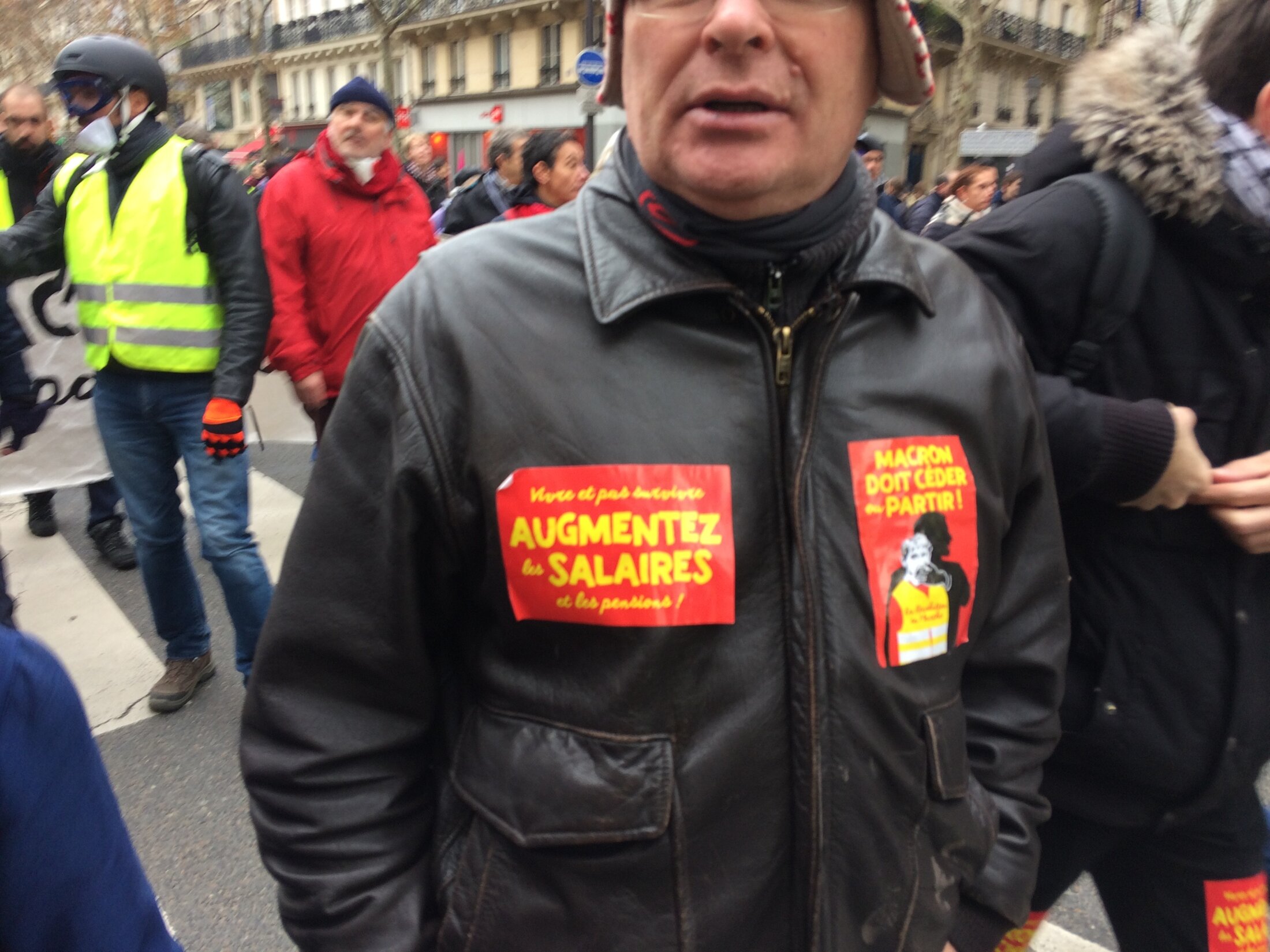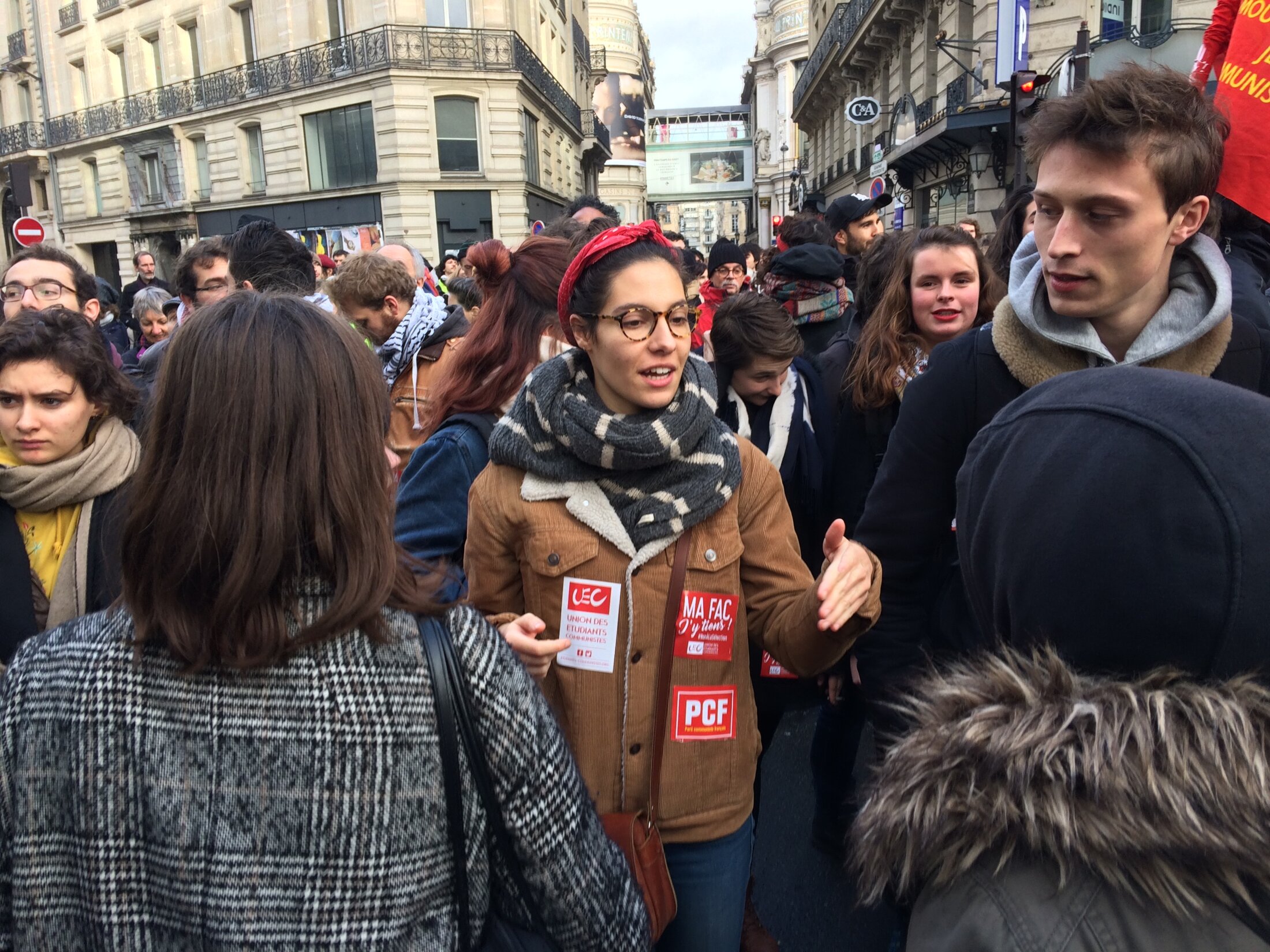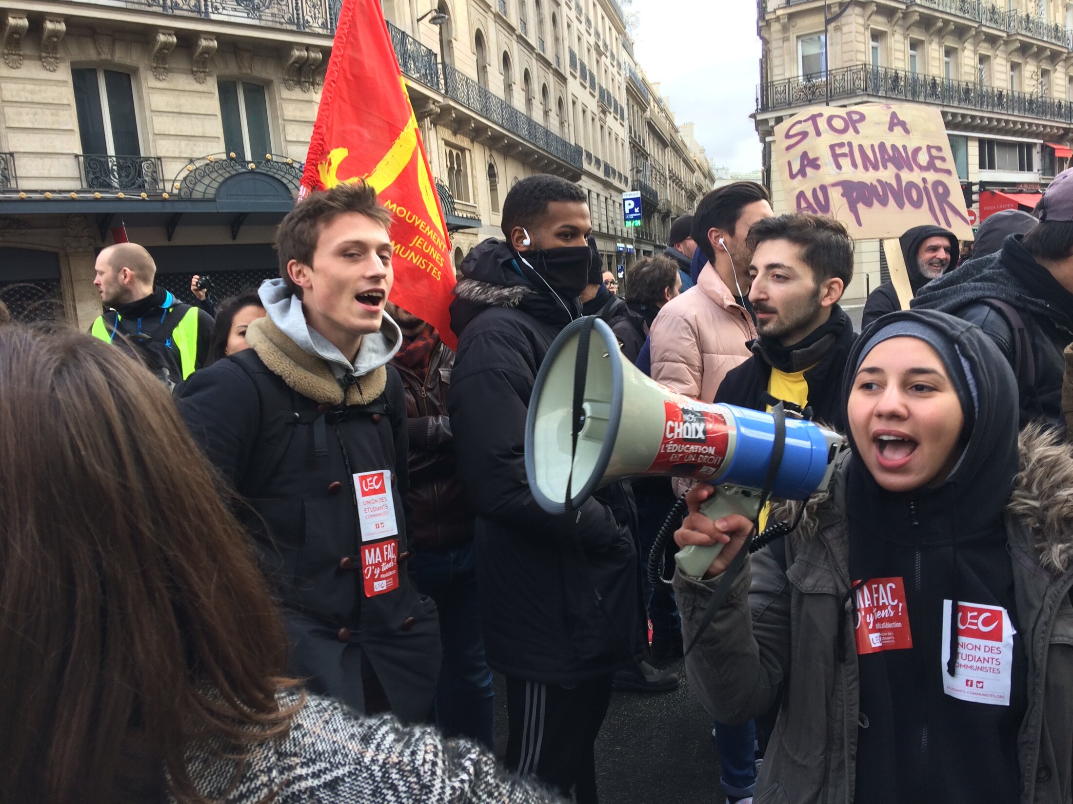 « Police de Macron, police du capital ! Laissez-les passer, cassez-vous, cassez-vous ! Tout le monde déteste la police ! Police partout, justice nulle-part, Macron démission ! »