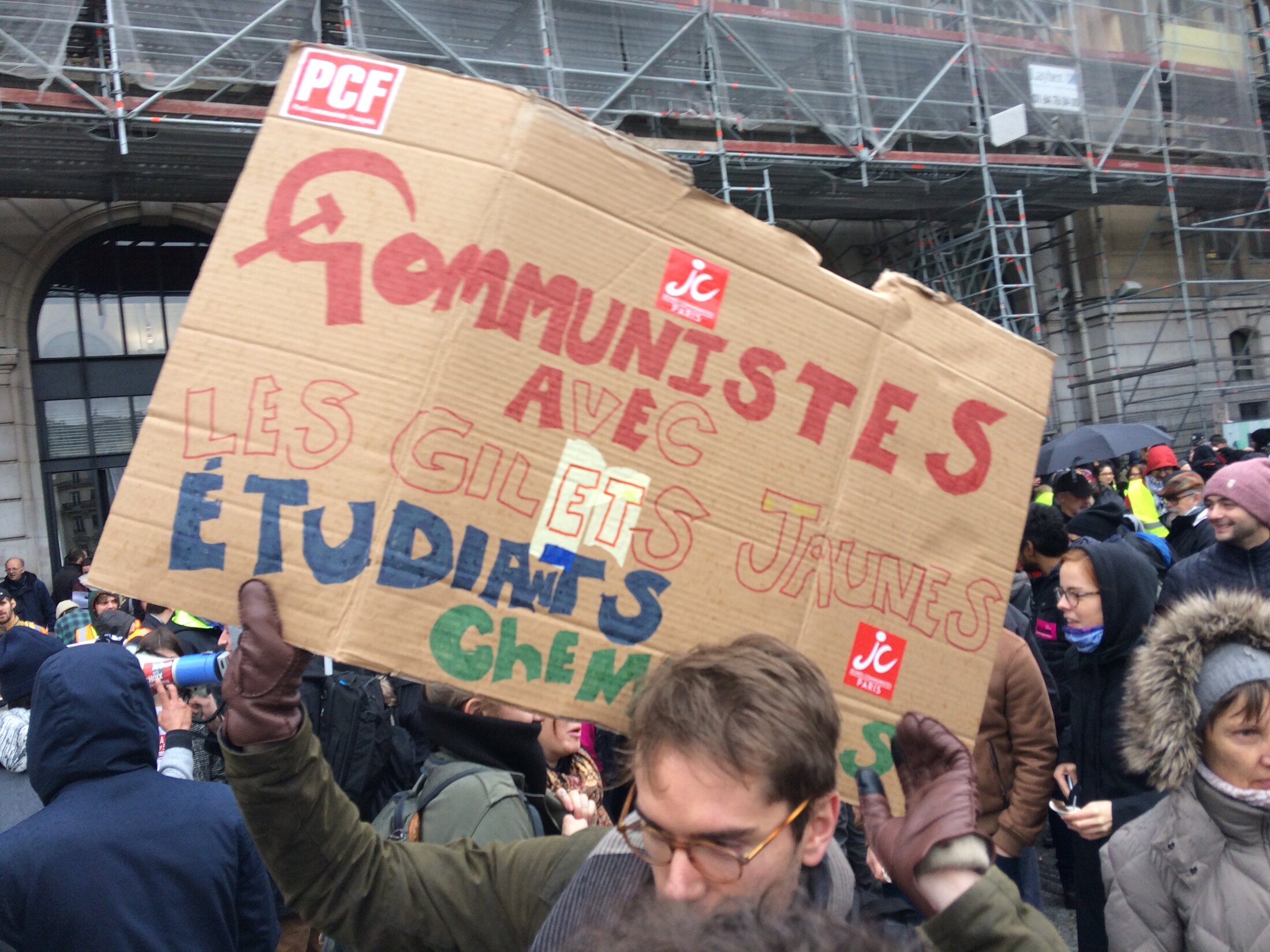 Gilets jaunes et gilets rouges de l'autre, jeunes et plus ancien.ne.s, étudiants, lycéens et ouvriers, syndiqué.e.s et non syndiqué.e.s,
