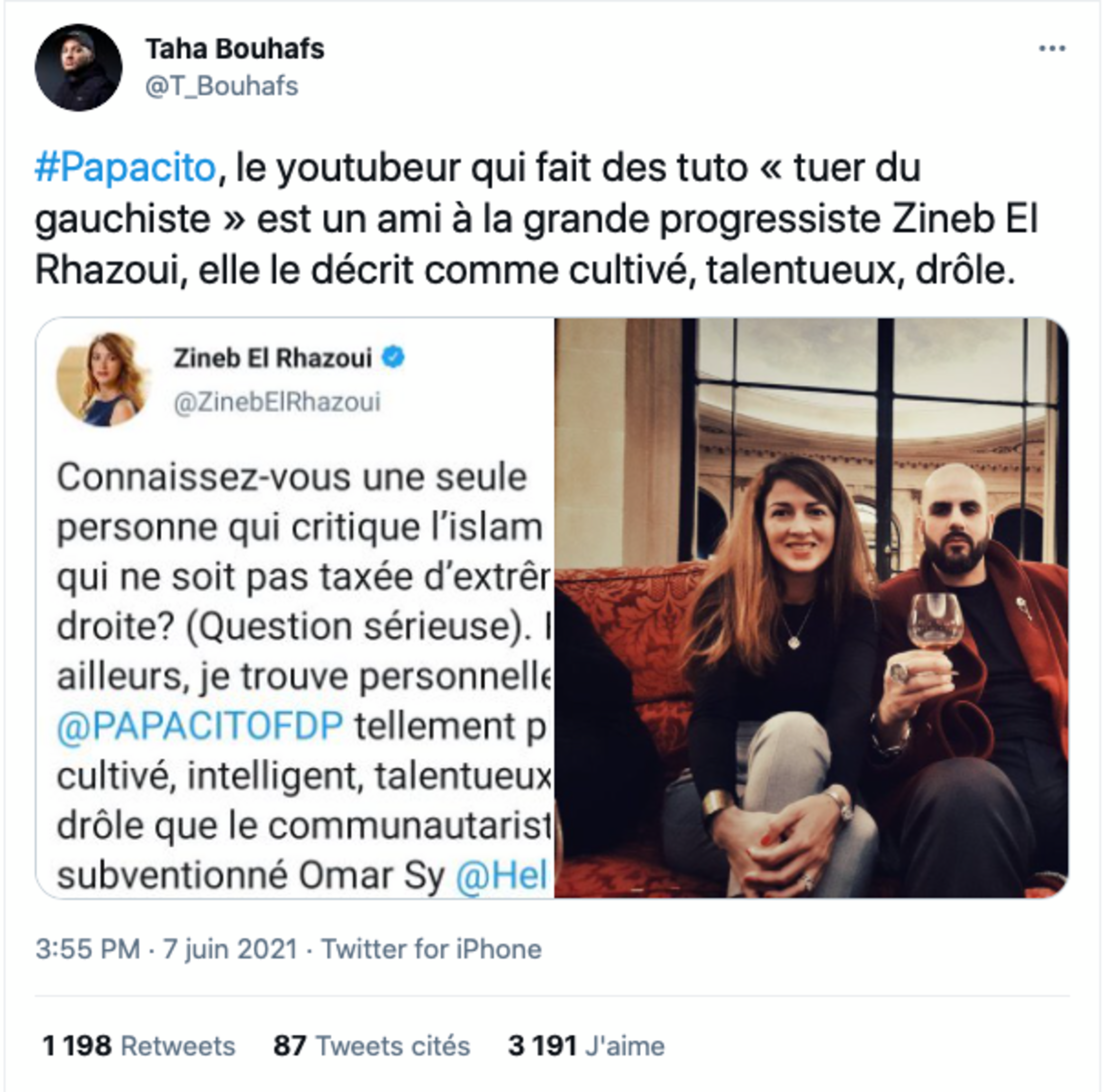 #Papacito, le youtubeur qui fait des tutos « tuer du gauchiste » est un ami de la grande progressiste et humaniste Zineb El Rhazaoui, qui le décrit comme « cultivé, intelligent, talentueux et drôle ».