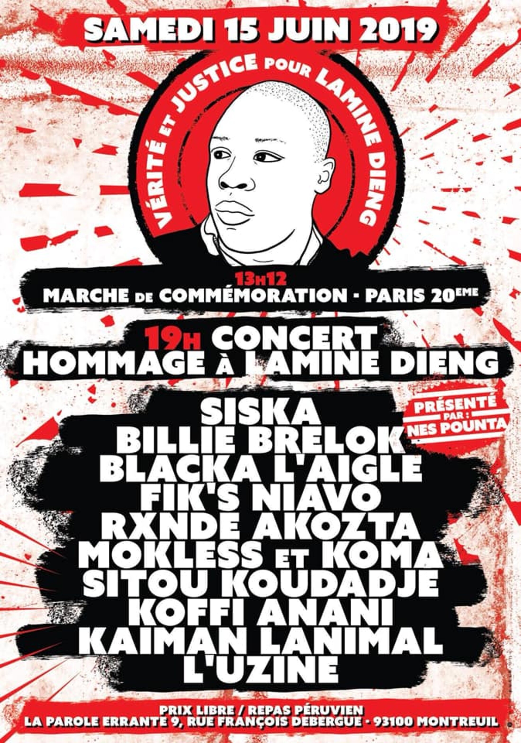 Cette année encore, douze ans après le meurtre de Lamine Dieng, nous marcherons en sa mémoire, avant de nous rendre à l'hommage que lui rendront plusieurs artistes lors du concert « Hommage à Lamine Dieng ».
