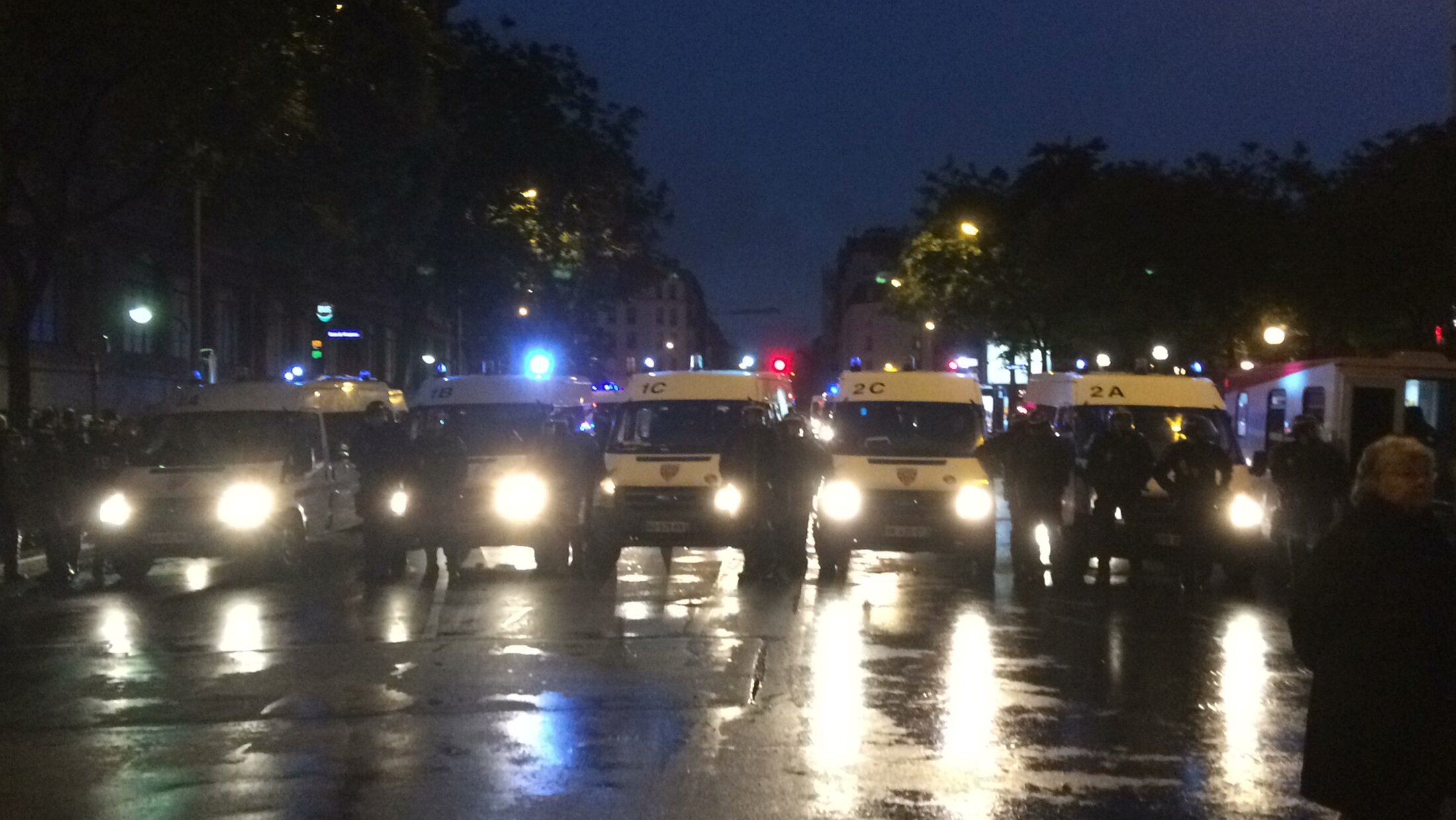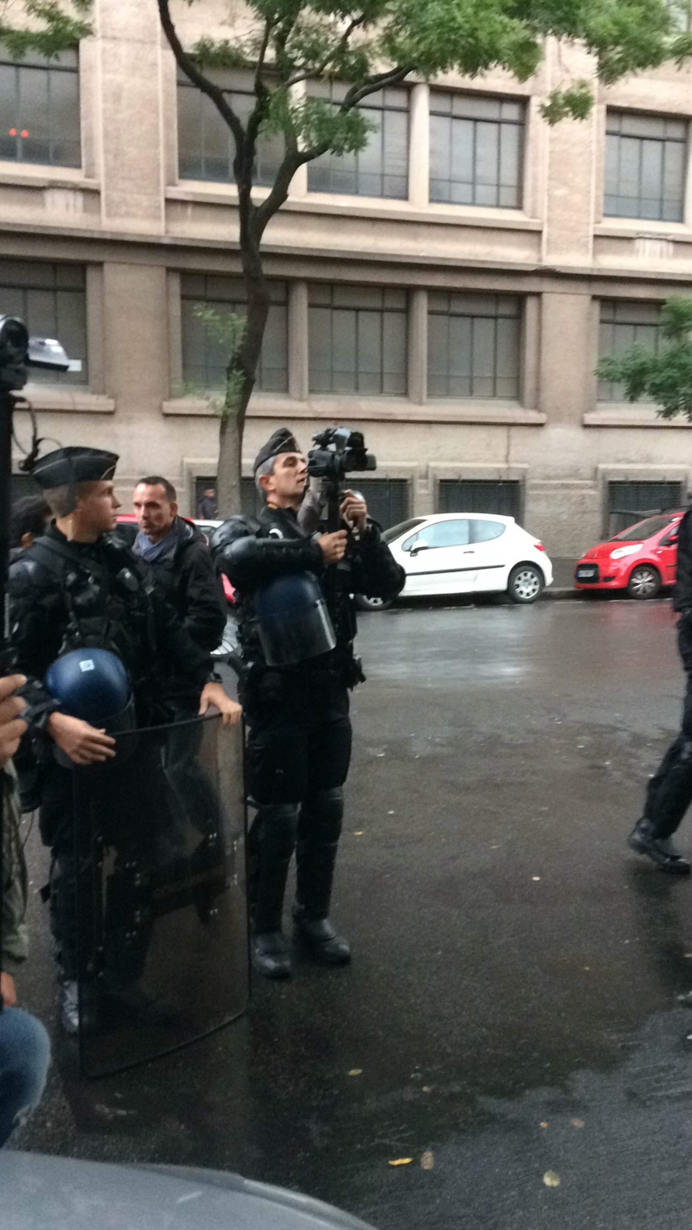 Manifestation pacifique, encadrée par des centaines de robocops armés jusqu'aux dents (là, c'est au début : vigilants, mais encore casque sous le bras), dont un cinéaste assermenté qui a ciblé un par un les participants, rafles à venir ?......