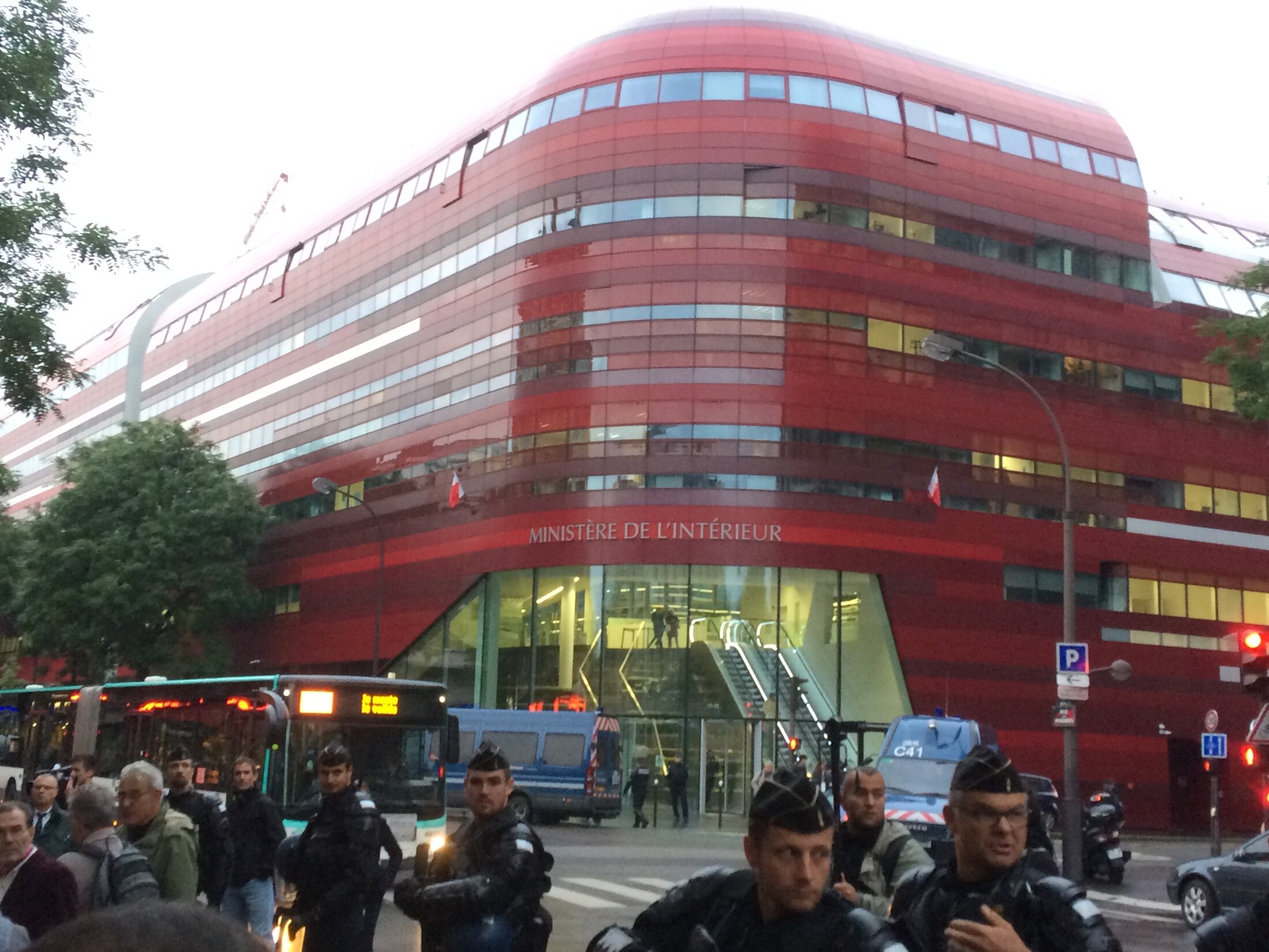 Hier soir, à Paris, se tenait un rassemblement de soutien aux expulsés de Calais (Ni bidonville, Ni expulsion : Liberté de Circulation ! ), rue des Pyrénées (20ème ar.), à quelques pas de l'imposant bâtiment néo-stalinien que le ministre Cazeneuve a inauguré le 12 janvier dernier pour reloger les "services centraux" de son Etat policier...