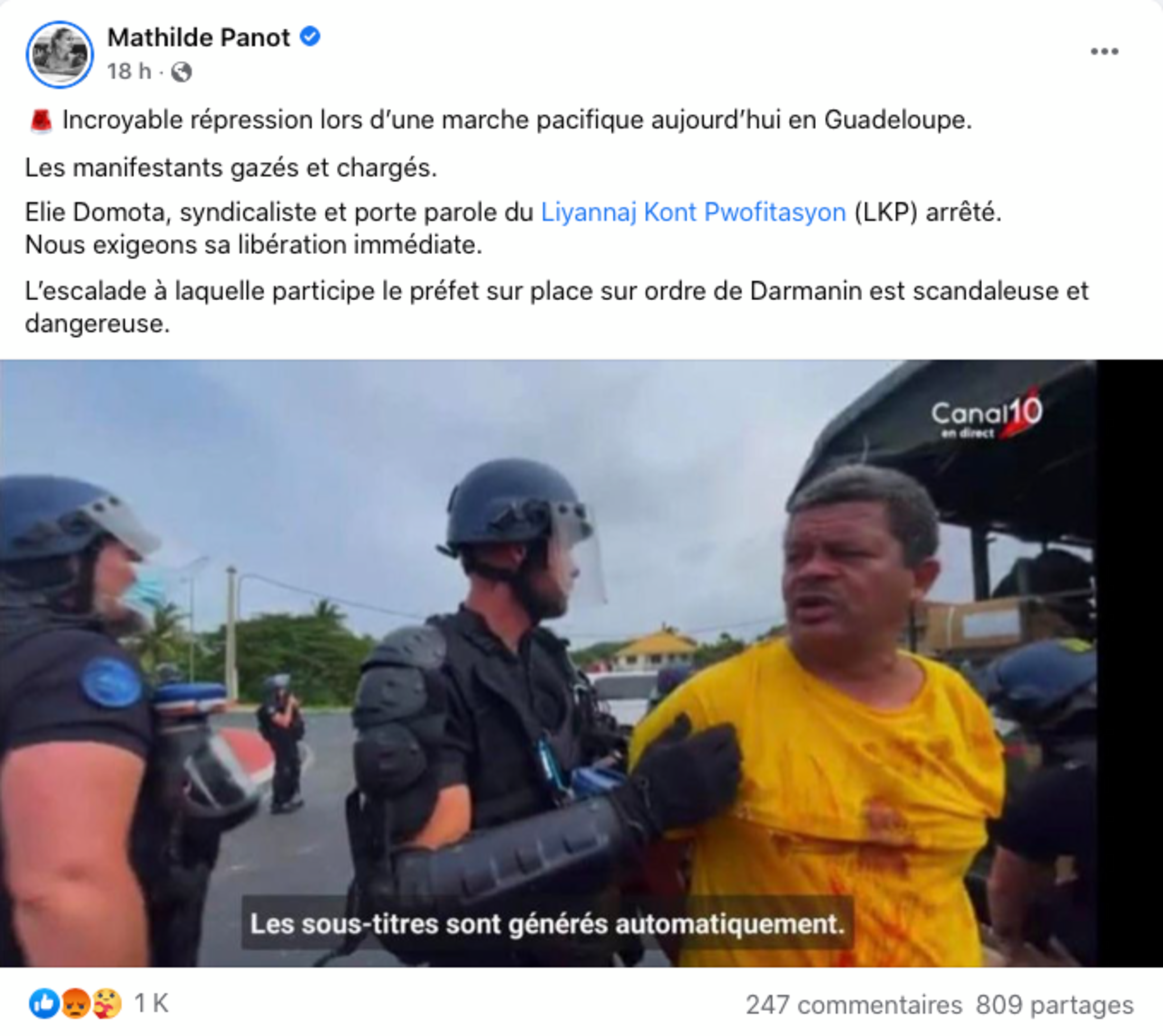 Après avoir envoyé les militaires et le GIGN pour mater la colère de la population, cette arrestation est une énième démonstration de la gestion répressive et coloniale de la mobilisation du peuple guadeloupéen.