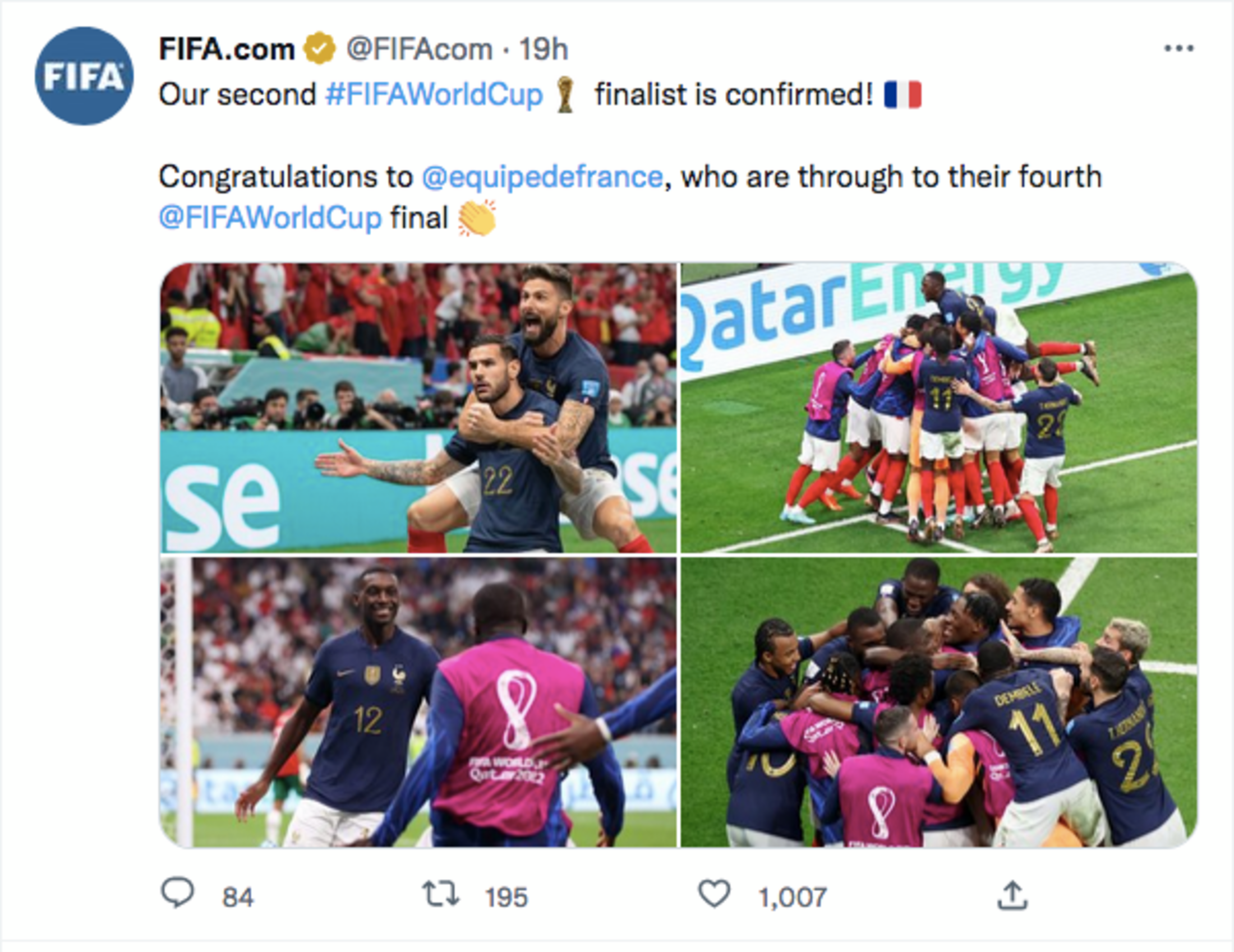 Le messianisme est l'intervention d'une personne dans la résolution de problèmes et la promesse d'un avenir meilleur. Dans ce cas, cette intervention serait associée à Messi et à ses performances sur le terrain de football. Au-delà d'avoir obtenu, avec son équipe, une nouvelle étoile, Messi représente donc un homme sur lequel fut déposée la confiance du public. Et quel public ! Le Qatar était paré des couleurs argentines et les supporters argentins étaient au rendez-vous, malgré la distance et la controverse autour de cette Coupe du monde au Qatar. Avant la finale, la FIFA a publié des photos des deux finalistes, la France et l'Argentine, sur son compte Twitter. Comme le montrent ces images, l'Argentine, un pays où le football est un mode de vie qui a inspiré les compositeurs de tango, le cinéma et la littérature, était là :
