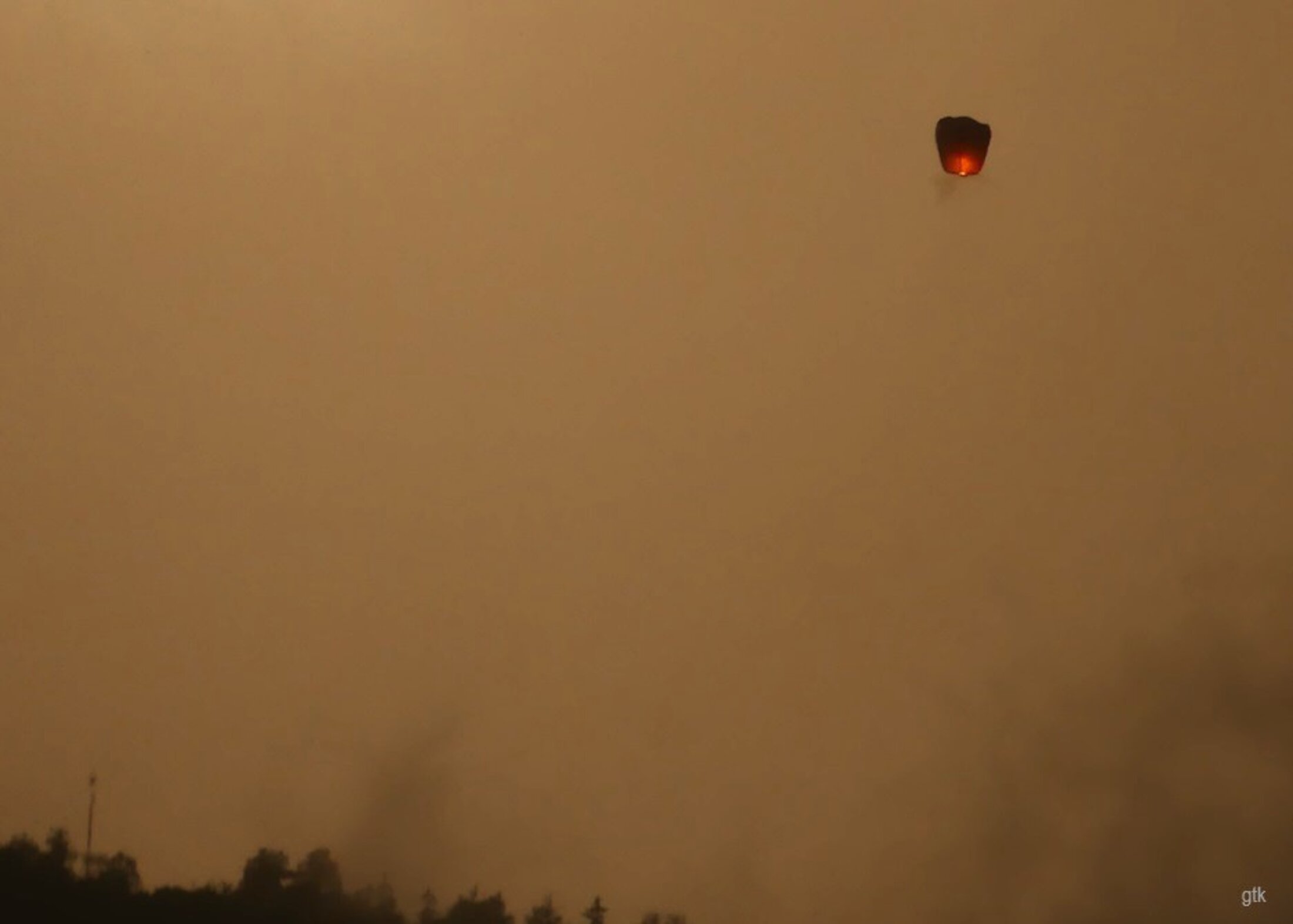 C’était hier soir chez moi, on nous annonçait un gros orage qui devait tout dévaster. Et j’ai vu passer des sacs remplis de feu, comme celui-là. Un vide aussi. On ne réussit pas à tous les coups. Le ciel était noir, et tout à coup, l’éclaircie alors que partout autour, le ciel était tout noir.