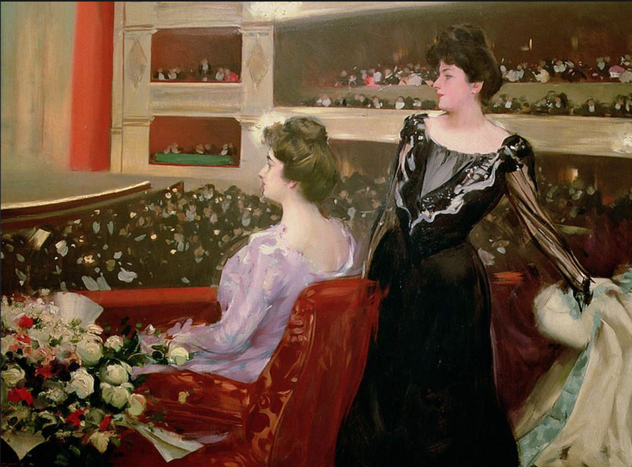 Là, elle retrousse sa jupe et enlève ses bas de soie noire, ce qui n'est pas sans donner à la créature le plaisant aspect d'être la victime d'un viol. "Prends-ça", me dit-elle en me donnant l'un de ses bas. "Noue-le autour du col de ta chemise. Cela te fera une belle cravate". Nous voici à l'intérieur du Liceu. Nous avons des places réservées dans la loge de la duchesse Sert. Mais elle n'est pas là. L'un de ses invités nous dit qu’elle se trouve au Cercle de les Socis. Il nous prie de le suivre. Nous arrivons devant la porte du Cercle, réservé exclusivement aux sociétaires du Liceu. Deux majordomes filtrent soigneusement les invités. Je caresse le bas qui me sert de cravate et qui me rappelle l'accoutrement d'un peintre. "Seu nom, si us plau ?" me demande en catalan l'un des valets, dont le front est enlaidi par un furhoncle d'où dégouline du pus de l'opus dei. "Paul Cézanne", dis-je, très sérieux. Confus, le valet baisse la tête et me permet de passer au milieu de mes compagnons. La Senyora Sert -très mince, longue robe noire sans manches, dépourvue de toute parure, du moindre bijou- est ravie de faire la connaissance d'André Pieyre de Mandiargues. Elle nous offre une flûte de cava, puis elle invite tout le groupe à visiter le Saint des Saints, où rarement les non-sociétaires sont admis. C'est la galerie des Casas, les portraits peints au début du XXe siècle par Ramon Casas, le grand peintre catalan. Nous défilons religieusement devant la collection de chefs-d'œuvre, éblouis par leur éclat et leur vivacité. Tout à coup une sonnette retentit. Il faut vite rejoindre notre loge.