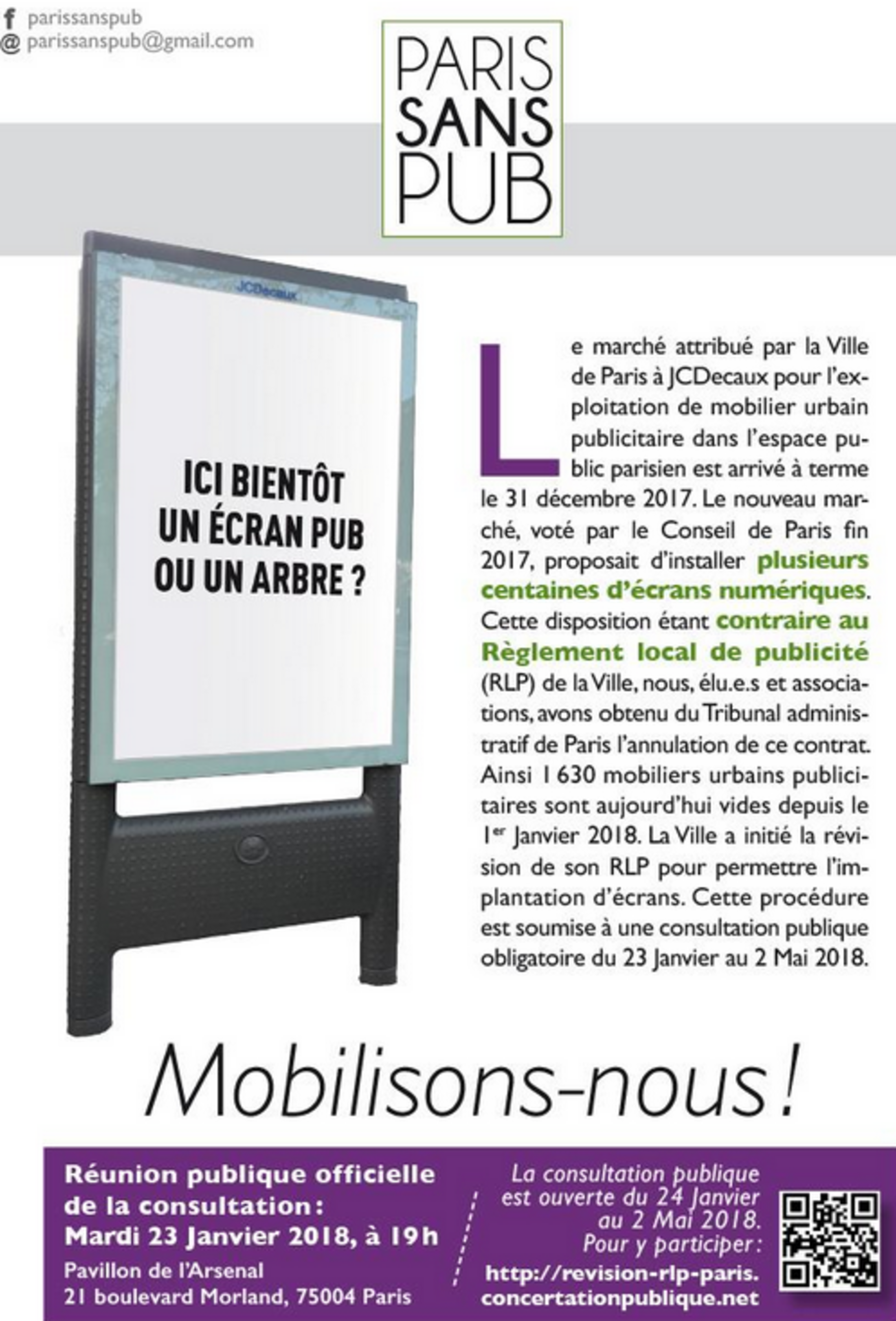 @JacquesBoutault : De la pub ou des arbres ? C'est à vous de choisir. Participez à la concertation sur la modification du Règlement local de publicité. @EELV_Paris @EELVIdF @ecoloParis @RAP_Asso