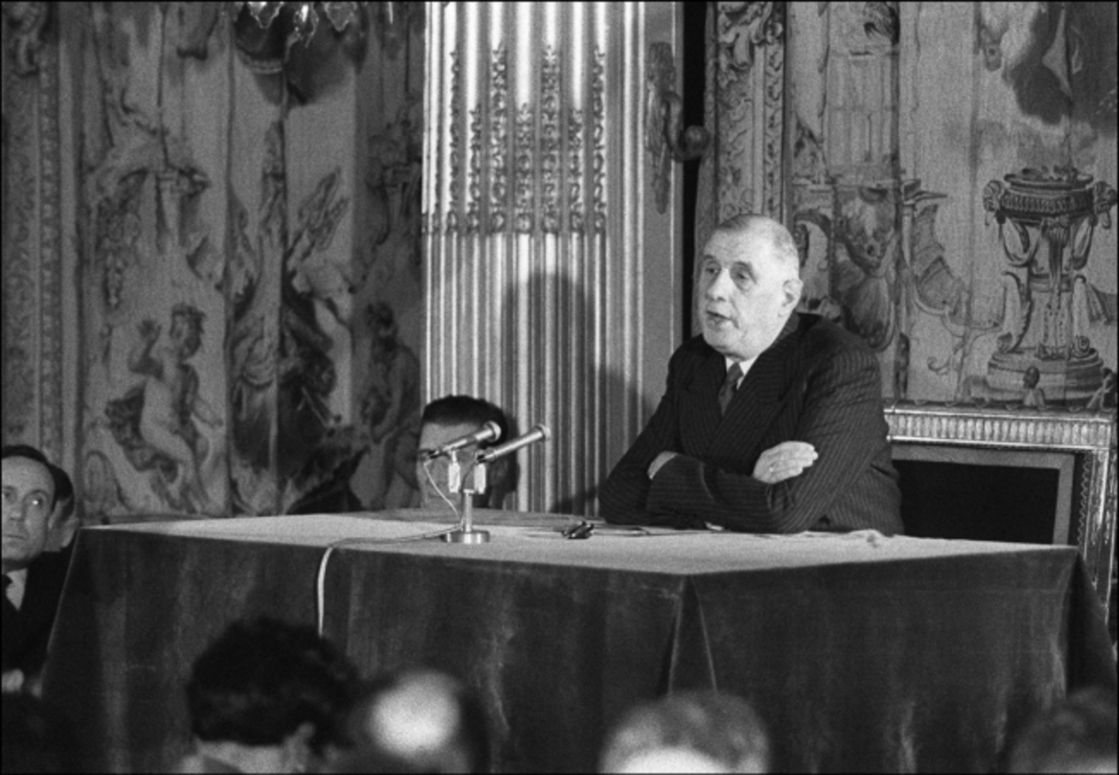 Ce jour-là, le nouveau chef de l’État s’adresse à un parterre de journalistes depuis le palais présidentiel. Si la presse est bien présente, son rôle reste assez réduit : poser des questions pour lesquelles le président a pu préparer les réponses. Au fil du temps et des septennats de Charles de Gaulle, la conférence de presse est devenue un exercice courant et régulier.