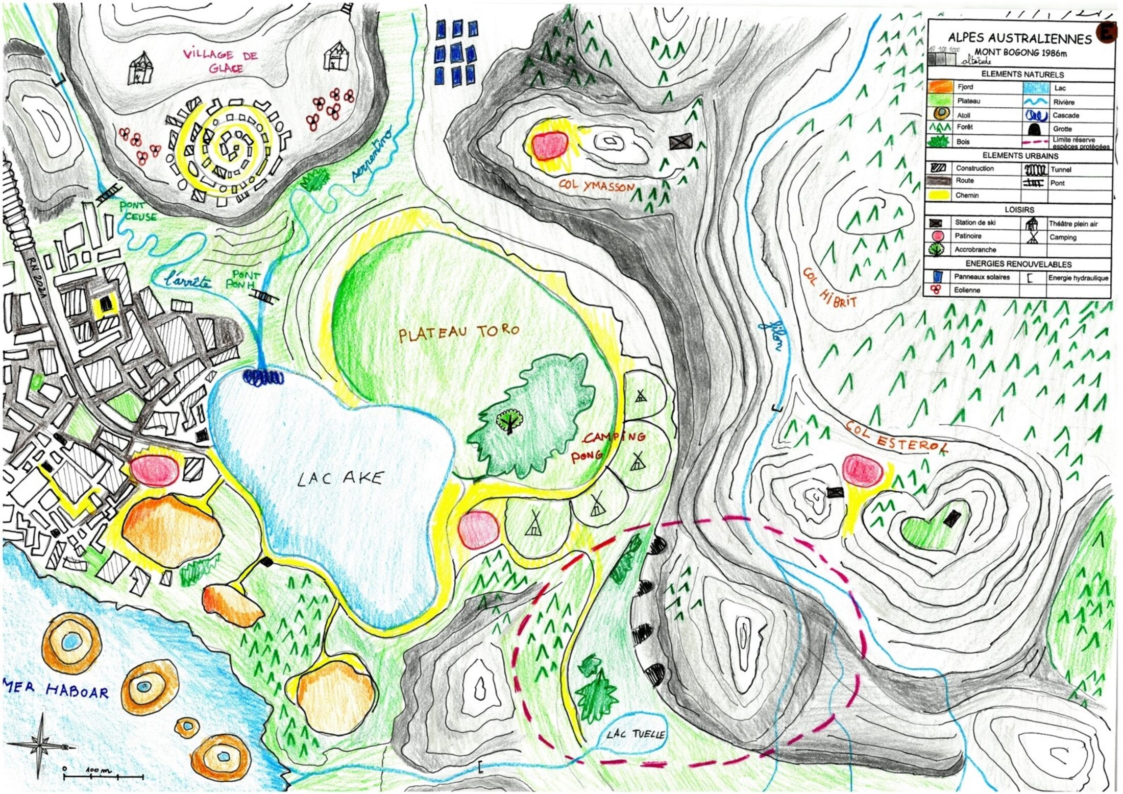 Nous avons également créé deux Concours Carto Imaginaire et d’Actualité pour les CM, 6ème et 5ème d’un côté et les 4ème, 3ème et 2nde de l’autre. Dans ces deux concours, on pose un sujet et on demande un croquis pour classer les lauréats. Pour le Concours Carto Imaginaire, on propose un sujet d’anticipation géographique : Habiter sous terre, Habiter Mars, Imaginer un territoire pour mieux manger, etc., où les élèves doivent mettre leurs connaissances géographiques au service d’un croquis de territoire, on leur demande beaucoup d’imagination tout en l’ancrant dans les problématiques environnementales et politiques. Pour le Concours Carto d’Actualité il s’agit de mettre en carte un article de presse : les élèves ont déjà travaillé sur les îles Kiribati, le tourisme à Haïti ou encore le réchauffement climatique au Groenland.